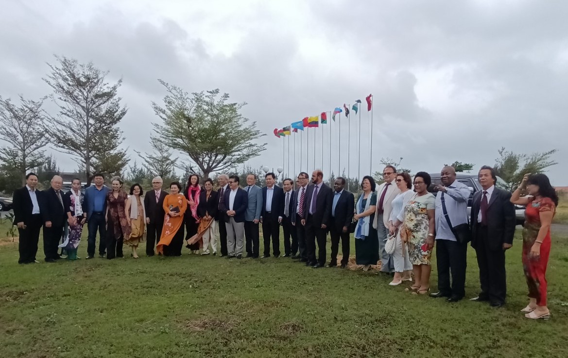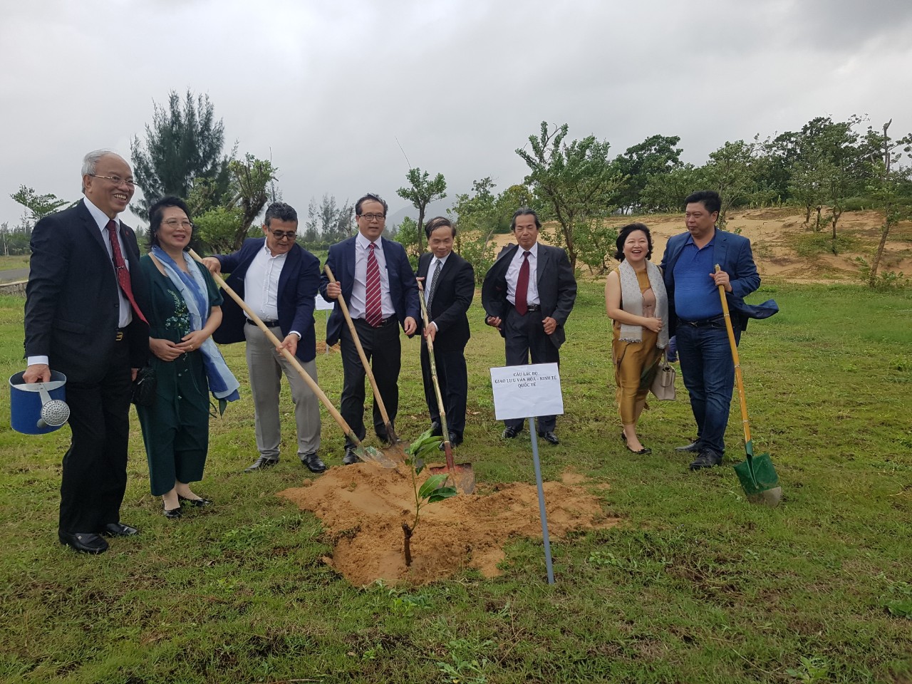 Đại biểu dự giao lưu trồng cây lưu niệm tại khu du lịch Sao Mai.