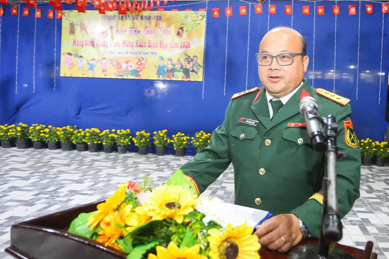 Thượng tá Nguyễn Vũ Linh, Chính ủy Trung đoàn 738 động viên cán bộ, chiến sĩ gác đêm giao thừa.