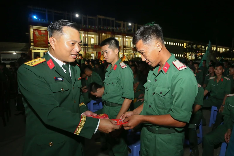 Đại úy Nguyễn Văn Thành, Chính trị viên Tiểu đoàn 1 lì xì chiến sĩ trước thời khắc giao thừa.