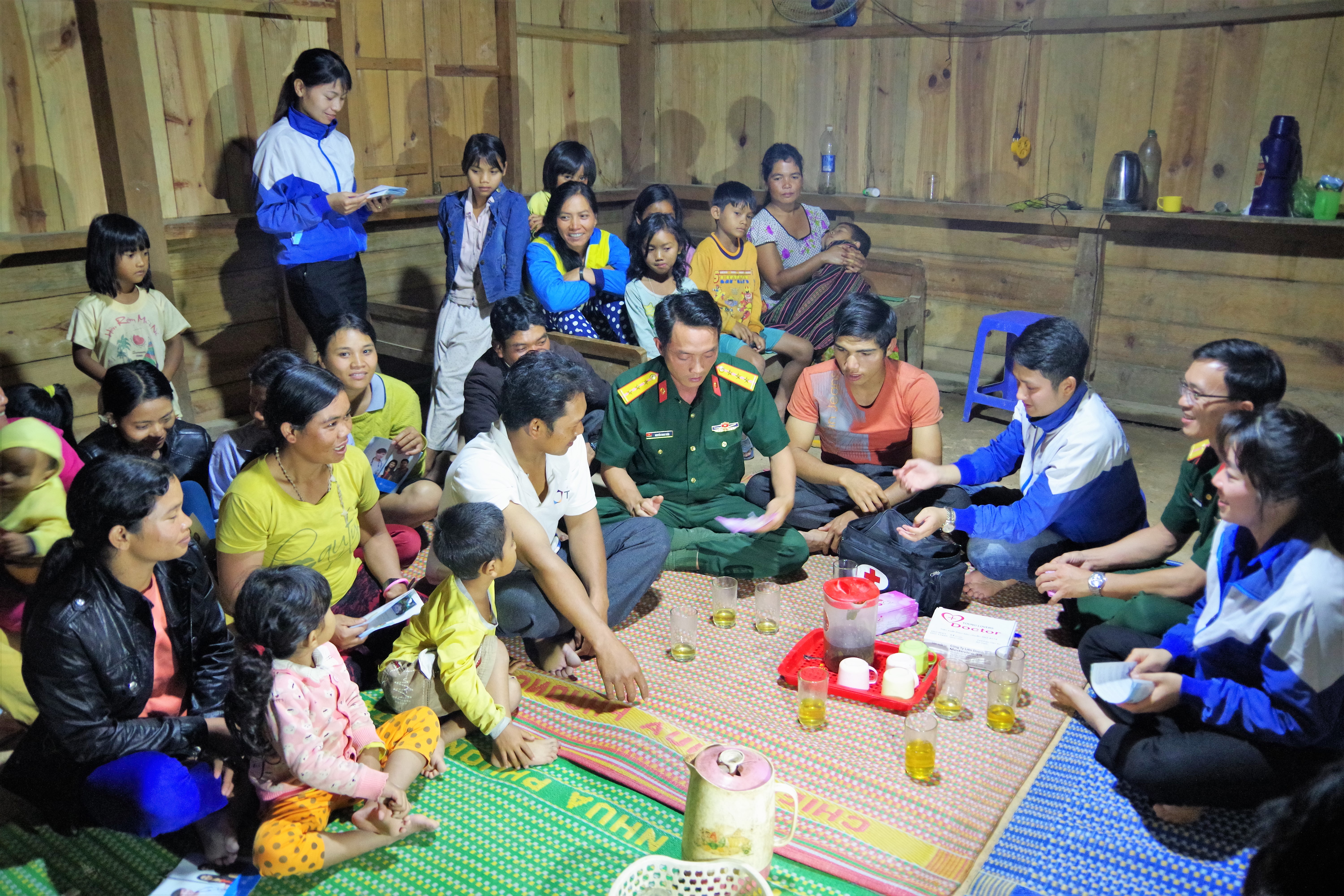 Cán bộ Đoàn Kinh tế - Quốc phòng Lâm Đồng rèn đọc cho bà con dân tộc Mông.