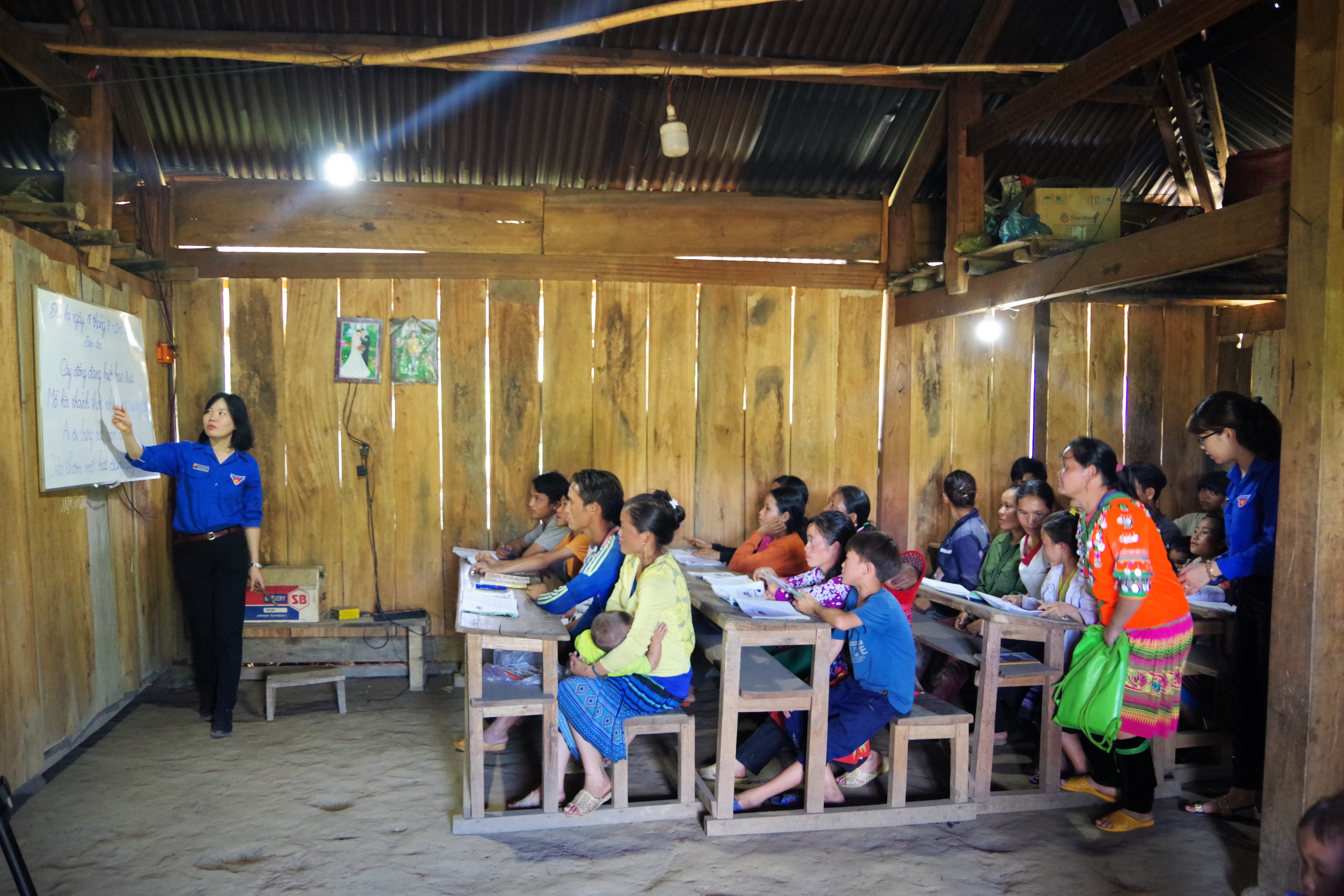 Trí thức trẻ tình nguyện dạy chữ cho đồng bào dân tộc.