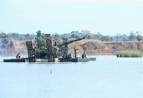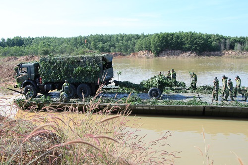 Binh khí kỹ thuật của các đơn vị binh chủng vượt sông, sẵn sàng đánh phá các mục tiêu.