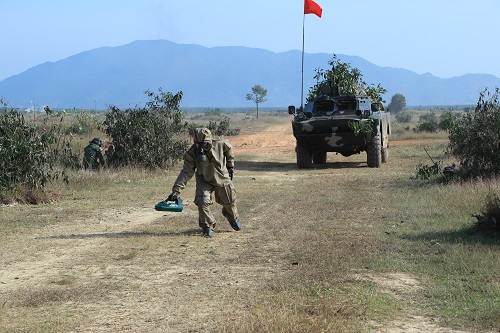 Bộ đội Hóa học làm nhiệm vụ tiêu tẩy chất độc.
