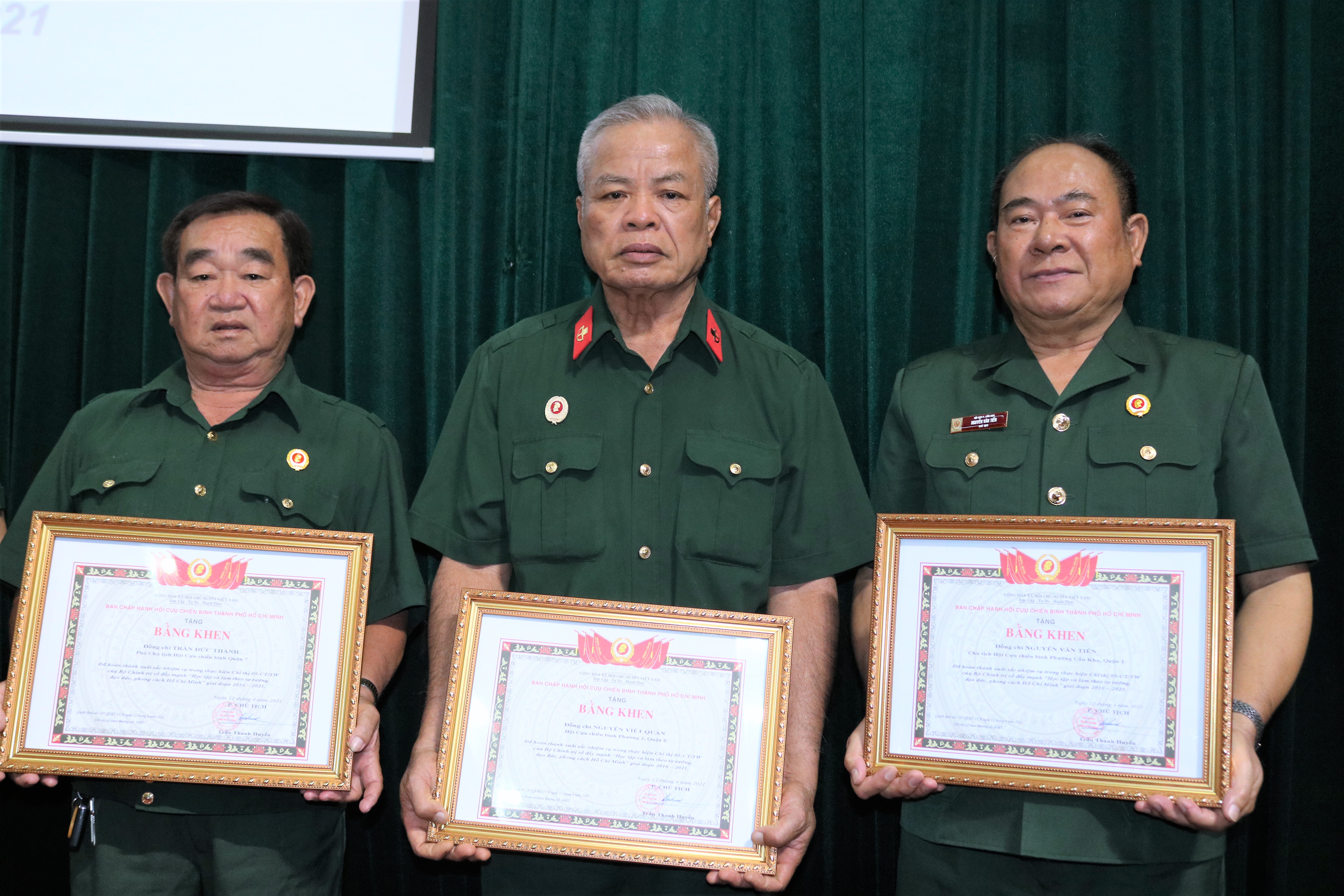 CCB Nguyễn Viết Quản (giữa) nhận bằng khen của Hội CCB TP.HCM