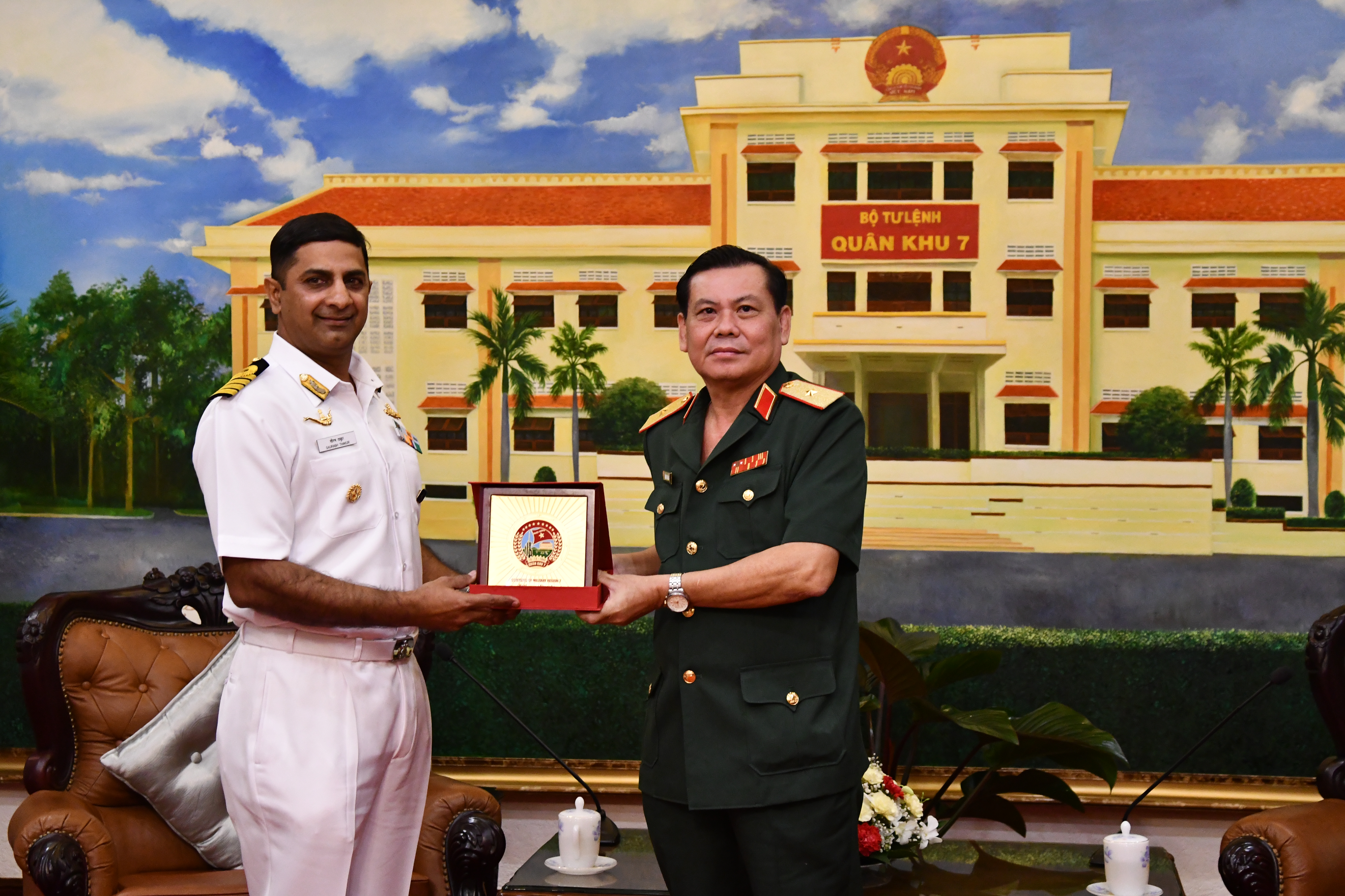 Đại tá Saurabh Thakur cảm ơn sự đón tiếp chu đáo, trọng thị của Quân khu 7 đối với đoàn và mong muốn tình đoàn kết hữu nghị giữa Hải Quân Ấn Độ và Quân khu 7 sẽ ngày càng phát triển. Đồng thời hai bên sẽ tiếp tục kế thừa và phát huy mối quan hệ đối tác chiến lược toàn diện và quan hệ quốc phòng giữa hai nước ngày càng bền vững.