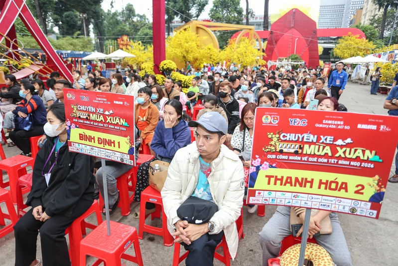 Sáng cùng ngày, Liên đoàn Lao động (LĐLĐ) TP.HCM tổ chức chương trình “Chuyến xe Công đoàn – Xuân 2026”, đưa hơn 1.700 đoàn viên, người lao động đang làm việc tại TP.HCM về các tỉnh miền Trung và miền Bắc sum họp gia đình dịp Tết Bính Ngọ.