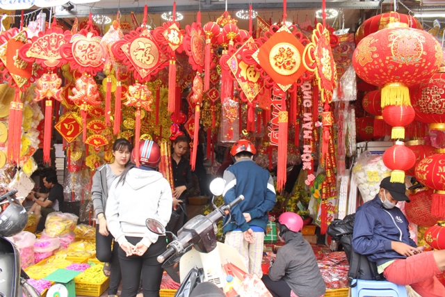 Chị Thi - chủ cửa hàng Minh Thi cho hay: “năm nào cũng vậy, cửa hàng của chị đều chuẩn bị đầy đủ các mặt hàng trang trí Tết từ rất sớm. Ngoài khách mua lẻ thì cửa hàng còn cung cấp cho nhiều đầu mối bán buôn khác. Để đảm bảo công việc được kinh doanh thuận lợi, ngoài số nhân viên thường trực, chị còn thuê thêm người để soạn và giao hàng kịp thời cho khách. Tầm từ 20 tháng Chạp, lượng khách mua hàng mới đông”.