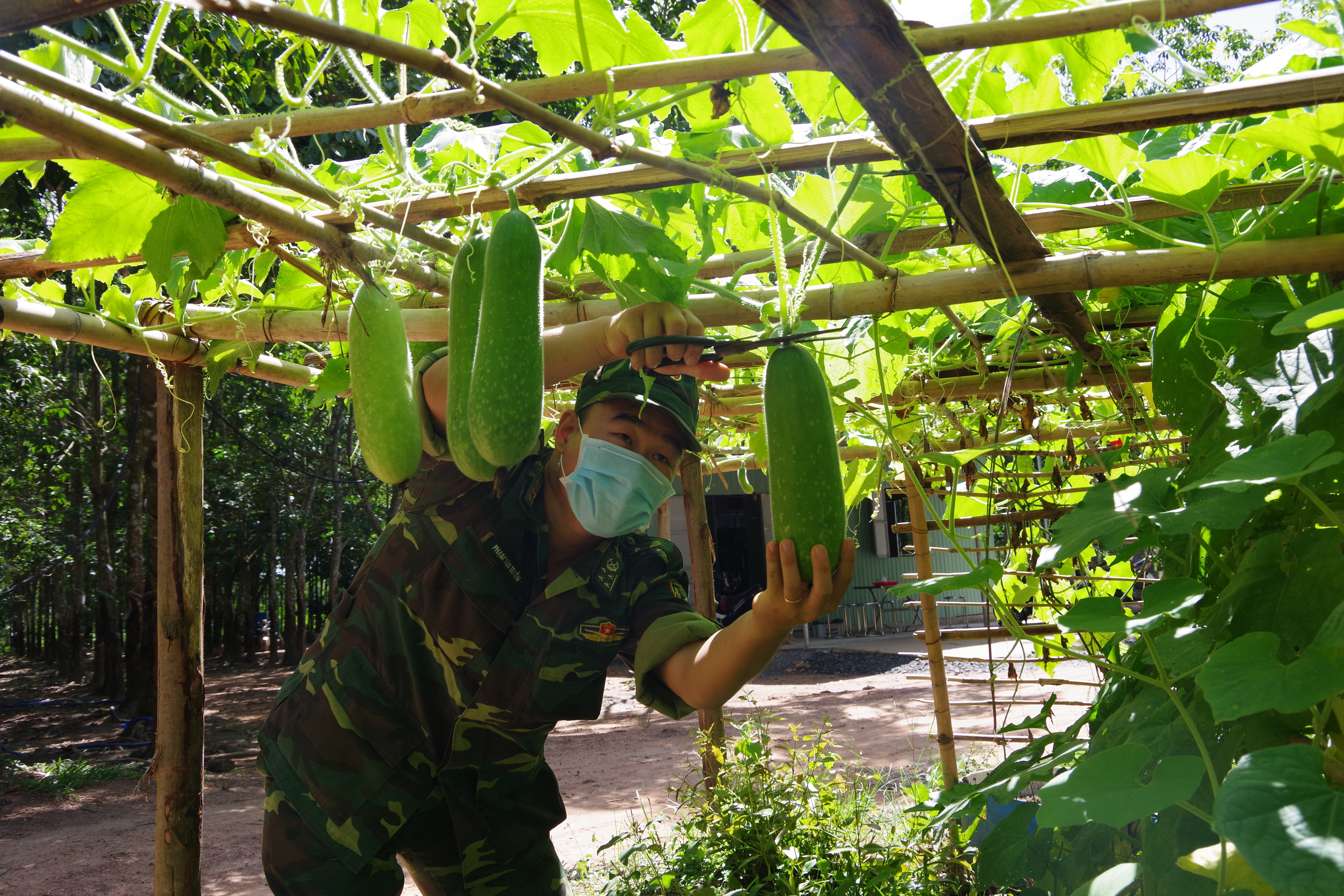 Bộ đội Biên phòng Bình Phước tăng gia trên chốt chống dịch.