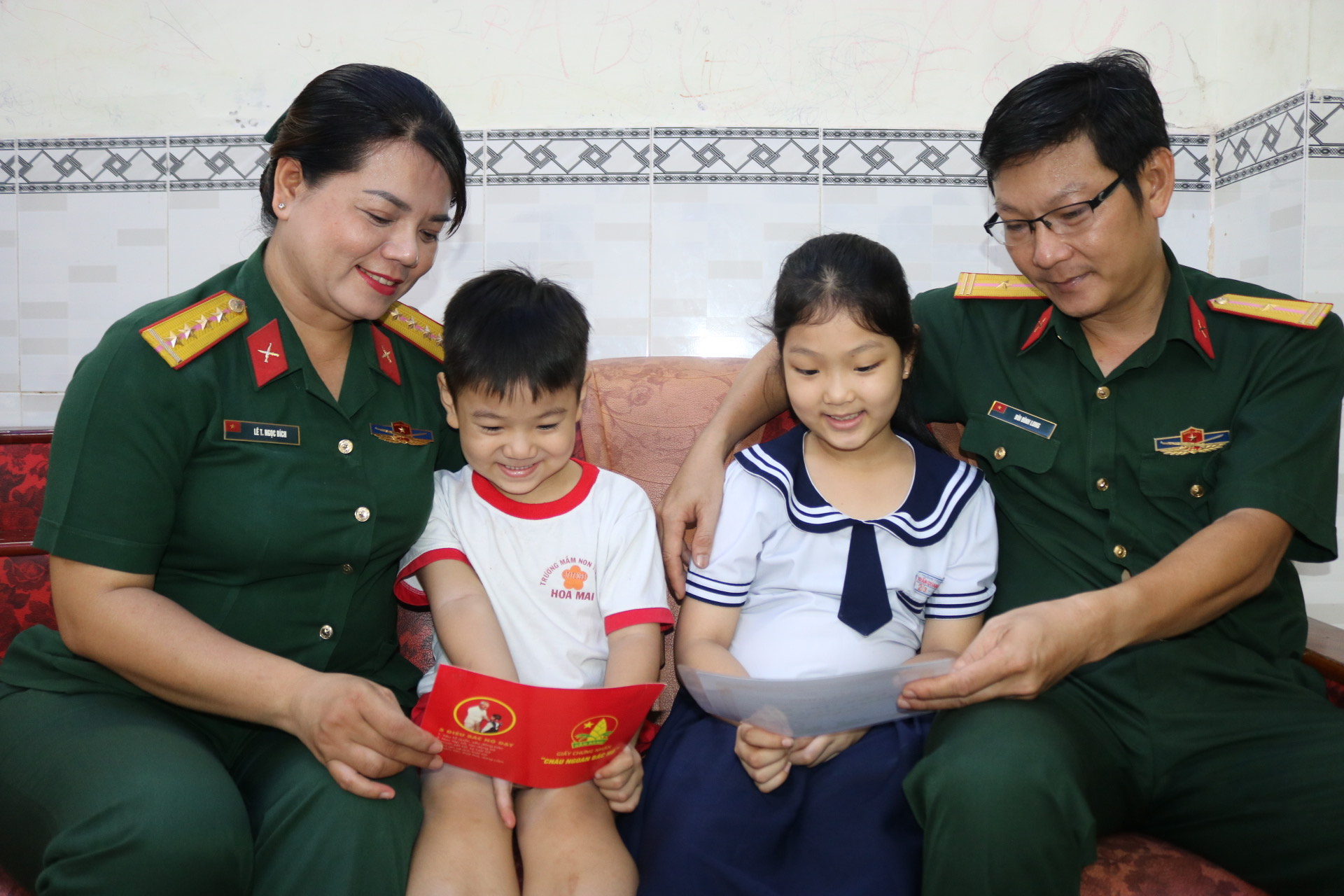 Hạnh phúc lớn nhất bây giờ của anh chị là 2 bé Bùi Thị Anh Thư (8 tuổi) và Bùi Đình Quang (5 tuổi) đều chăm ngoan, học giỏi. Hai chị em đều có ý thức tự giác trong sinh hoạt cá nhân, học tập, ít khi để bố mẹ nhắc nhở. Dù chỉ mới 5 tuổi, nhưng bé Quang đã biết đọc, biết viết và giỏi tiếng Anh, còn bé Thư thì bộc lộ năng khiếu vẽ, văn nghệ từ nhỏ. Anh Long chia sẻ: “Bản thân được rèn luyện và trưởng thành trong môi trường Quân đội nên khi dạy con, tôi cũng áp dụng cách giáo dục mang tính kỷ luật, nghiêm túc và tự giác, những điều này sẽ khiến các con vững vàng hơn trên đường đời”.
