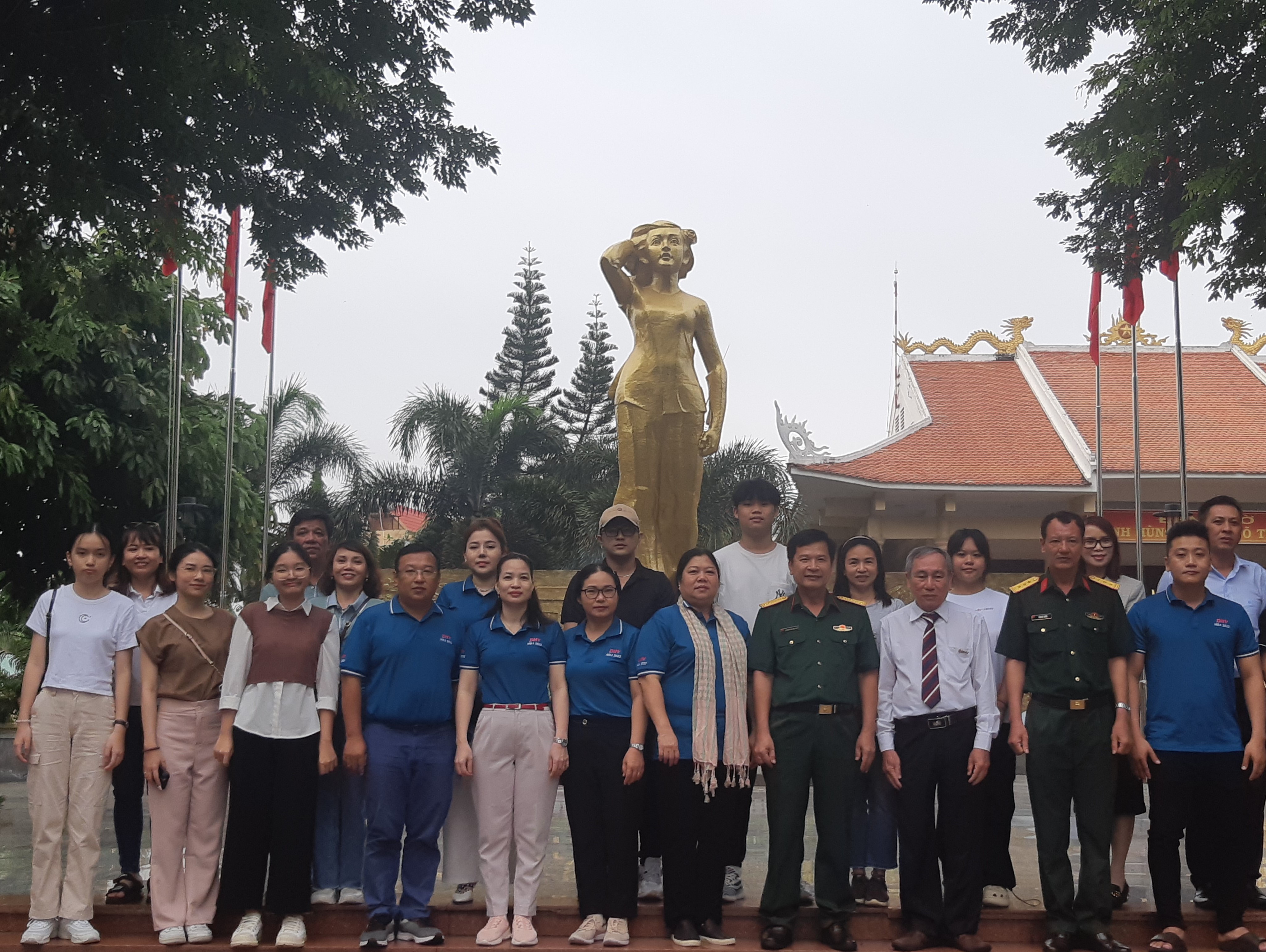 Đại tá Trương Hoàng Việt, Giám đốc Bệnh viện Quân dân y miền Đông (thứ 4 bên trái), cùng lãnh đạo và sinh viên lớp sau đại học của Trường Đại học Hùng Vương (TP Hồ Chí Minh) chụp hình lưu niệm tại Tượng đài Anh hùng liệt sĩ Võ Thị Sáu.