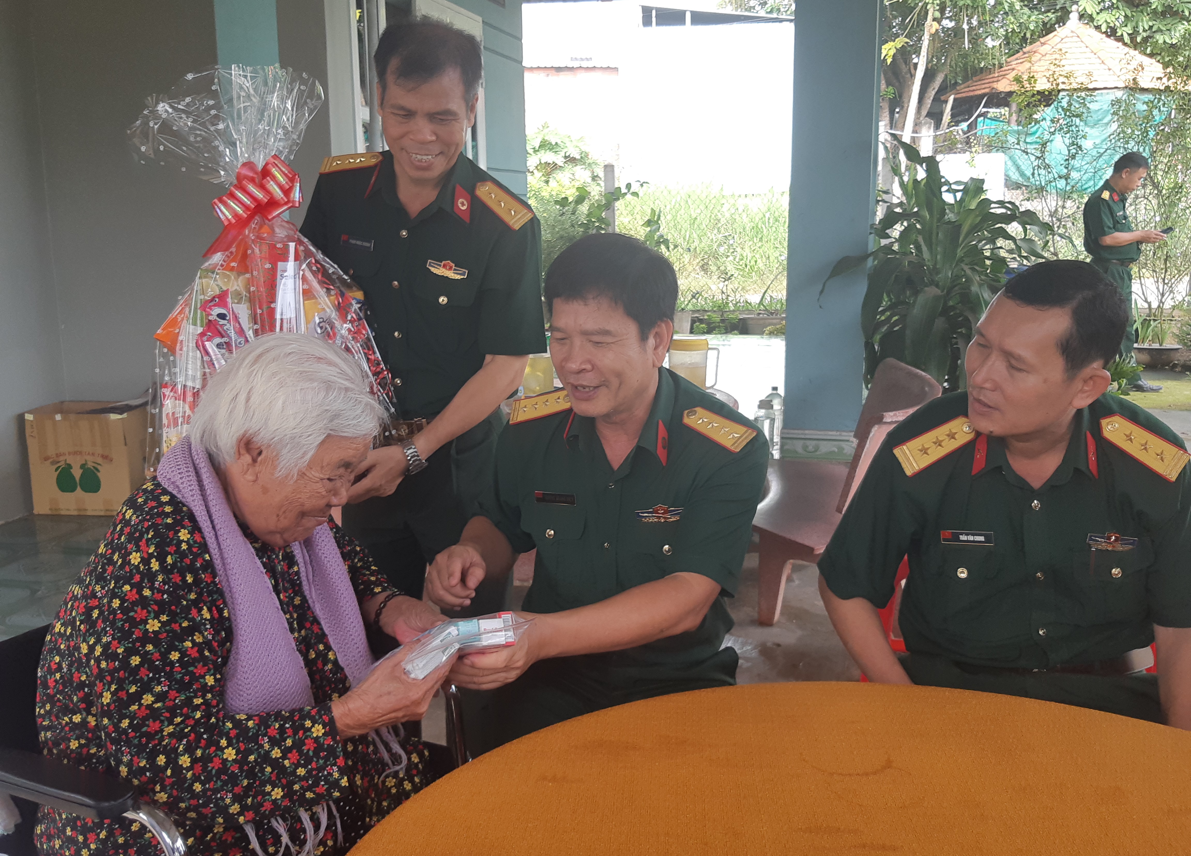 Đại tá Trương Hoàng Việt, Giám đốc Bệnh viện Quân dân y miền Đông, thăm khám, cấp thuốc và tặng quà Bà mẹ Việt Nam Anh hùng Nguyễn Thị Chính, ấp Cây Cám, xã Láng Dài, huyện Đất Đỏ, tỉnh Bà Rịa - Vũng Tàu.