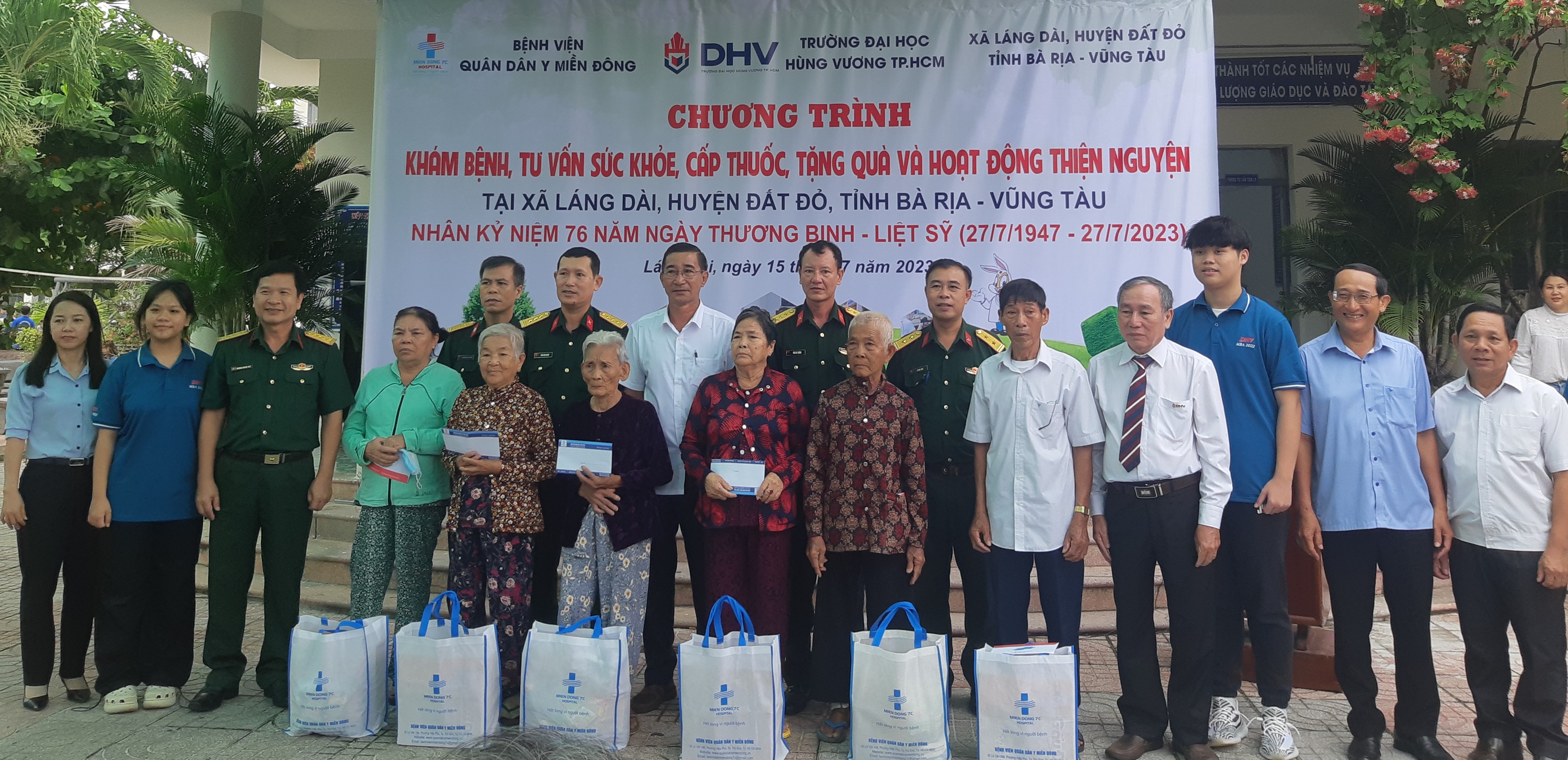 Bệnh viện Quân dân y miền Đông khám bệnh, tư vấn sức khỏe, cấp thuốc và trao 200 suất quà, tặng đối tượng chính sách; mỗi phần quà trị giá khoảng 200.000 đồng. Tổng kinh phí hơn 80 triệu đồng.