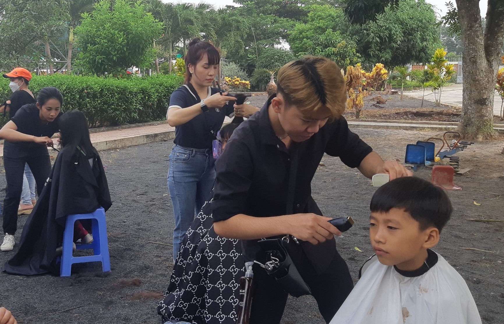 Nhóm thiện nguyện Barber Minh Hậu hớt tóc miễn phí cho người dân.