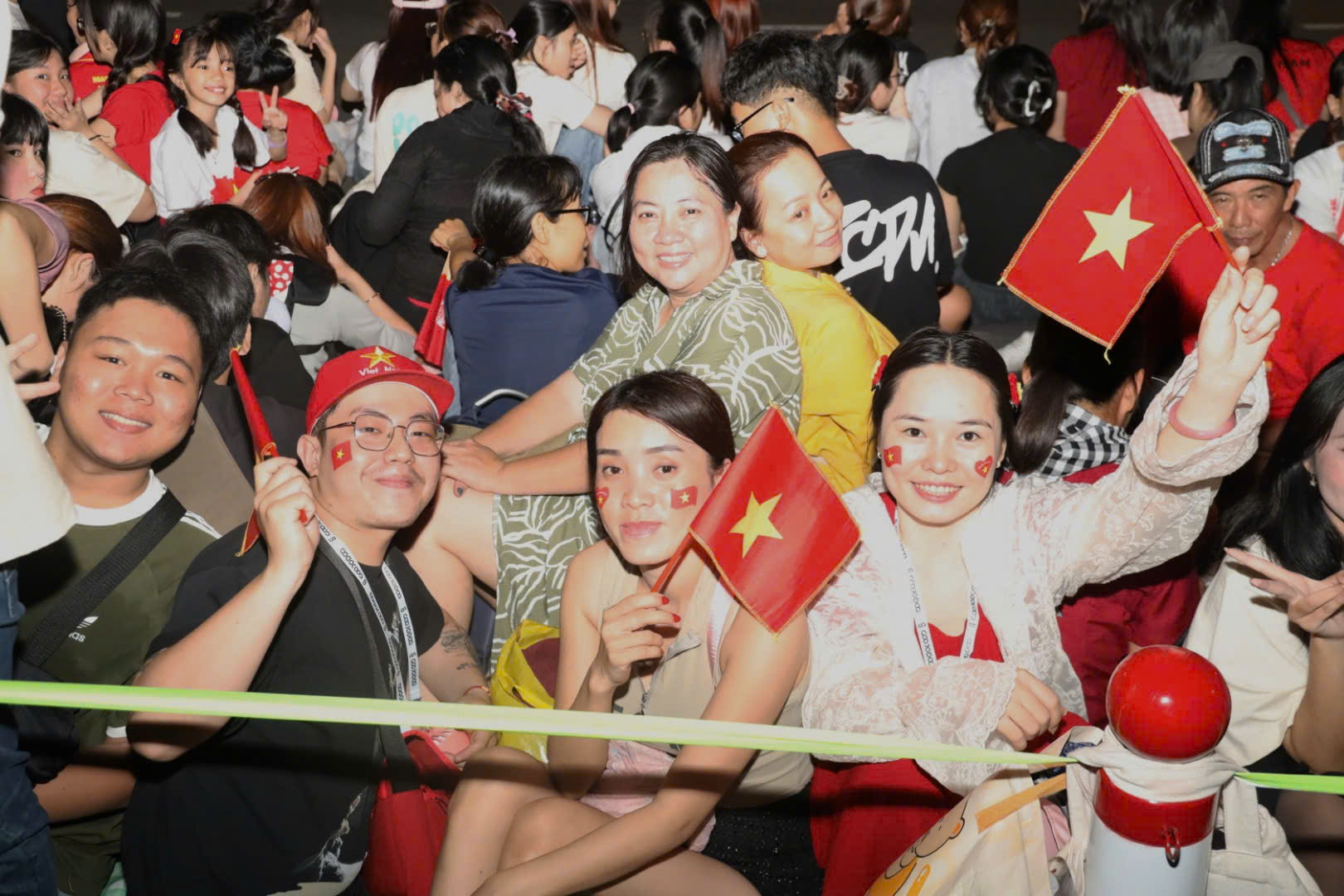 Trên tay cầm cờ đỏ, sao vàng chờ đợi từ 2 giờ sáng.