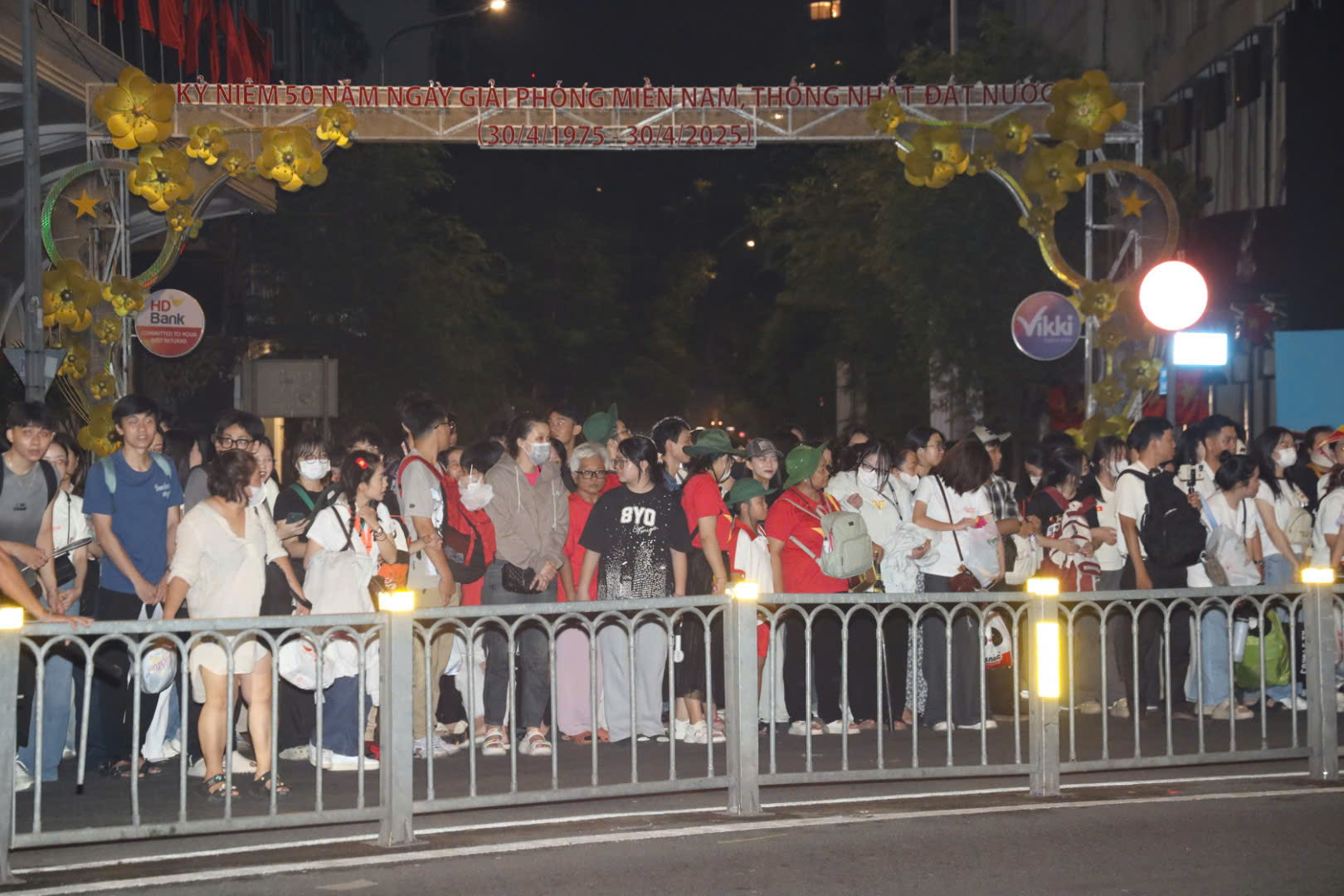 (QK7 Online) - Mặc dù đến 7 giờ sáng ngày 27/4 mới diễn ra lễ tổng duyệt chính thức chương trình Lễ kỷ niệm 50 năm Ngày Giải phóng miền Nam, thống nhất đất nước (30/4/1975-30/4/2025), nhưng ngay từ 2 giờ sáng, có rất đông người dân, du khách tập trung có mặt tại các trục đường trung tâm tại Quận 1, Thành phố Hồ Chí Minh để cùng chờ đón tận mắt chứng kiến những bước chân đều tăm tắp của cán bộ, chiến sĩ các khối diễu binh, diễu hành.