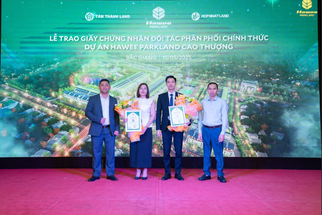 Lễ trao giấy chứng nhận đại lý phân phối chính thức dự án Hawee Parkland Cao Thượng cho 2 đại lý Tâm Thành Land và Hợp Nhất Land.