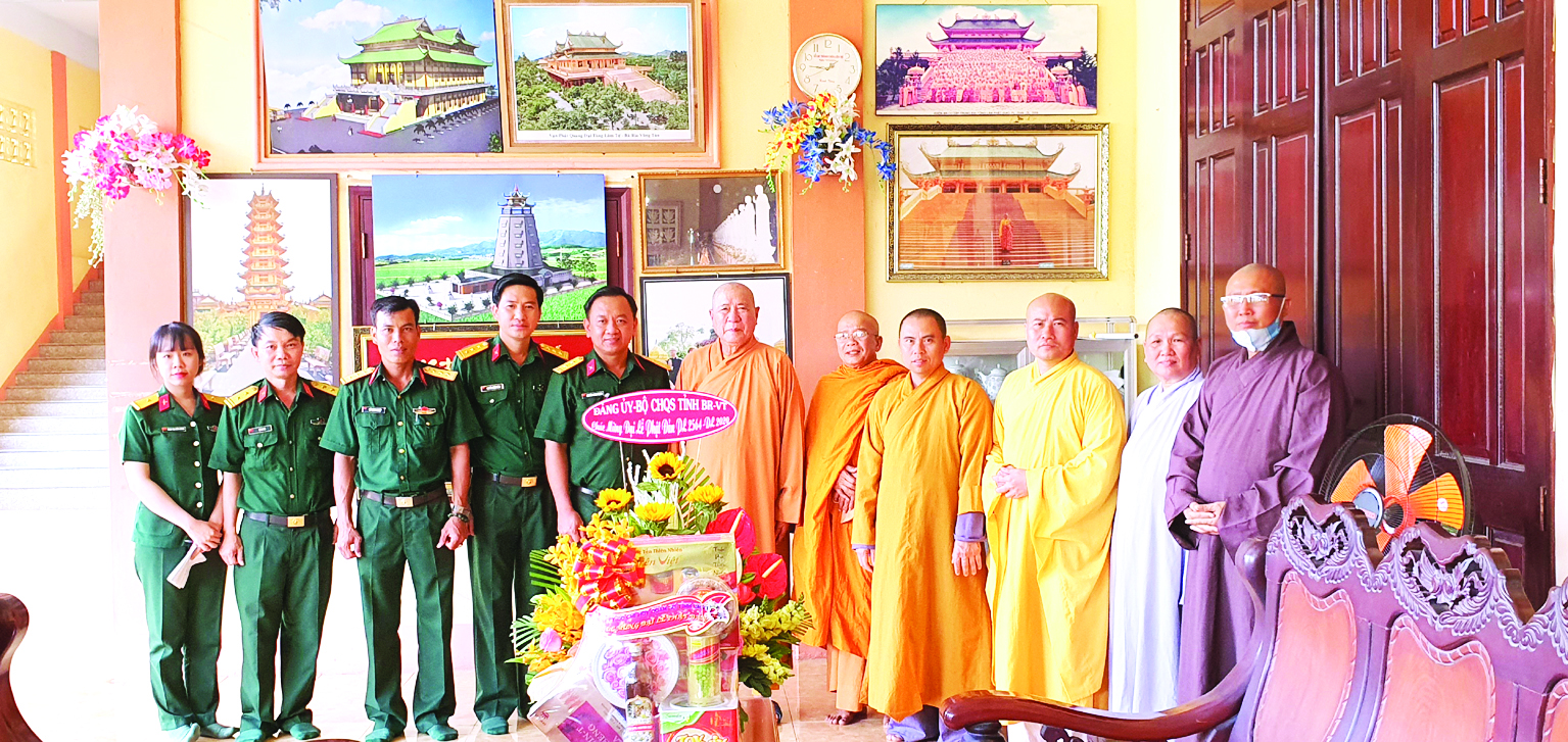Ngoài việc xây dựng “Nhà tình nghĩa quân - dân”, Đảng ủy, Bộ CHQS tỉnh phối hợp với cấp ủy, chính quyền địa phương thường xuyên thăm, tặng quà Ban Trị sự GHPGVN tỉnh và hơn 160 nhà chùa, tịnh xá trên địa bàn tỉnh, riêng Bộ CHQS tỉnh tổ chức 15 đoàn thăm 66 cơ sở Phật giáo nhân các ngày lễ lớn của đất nước.