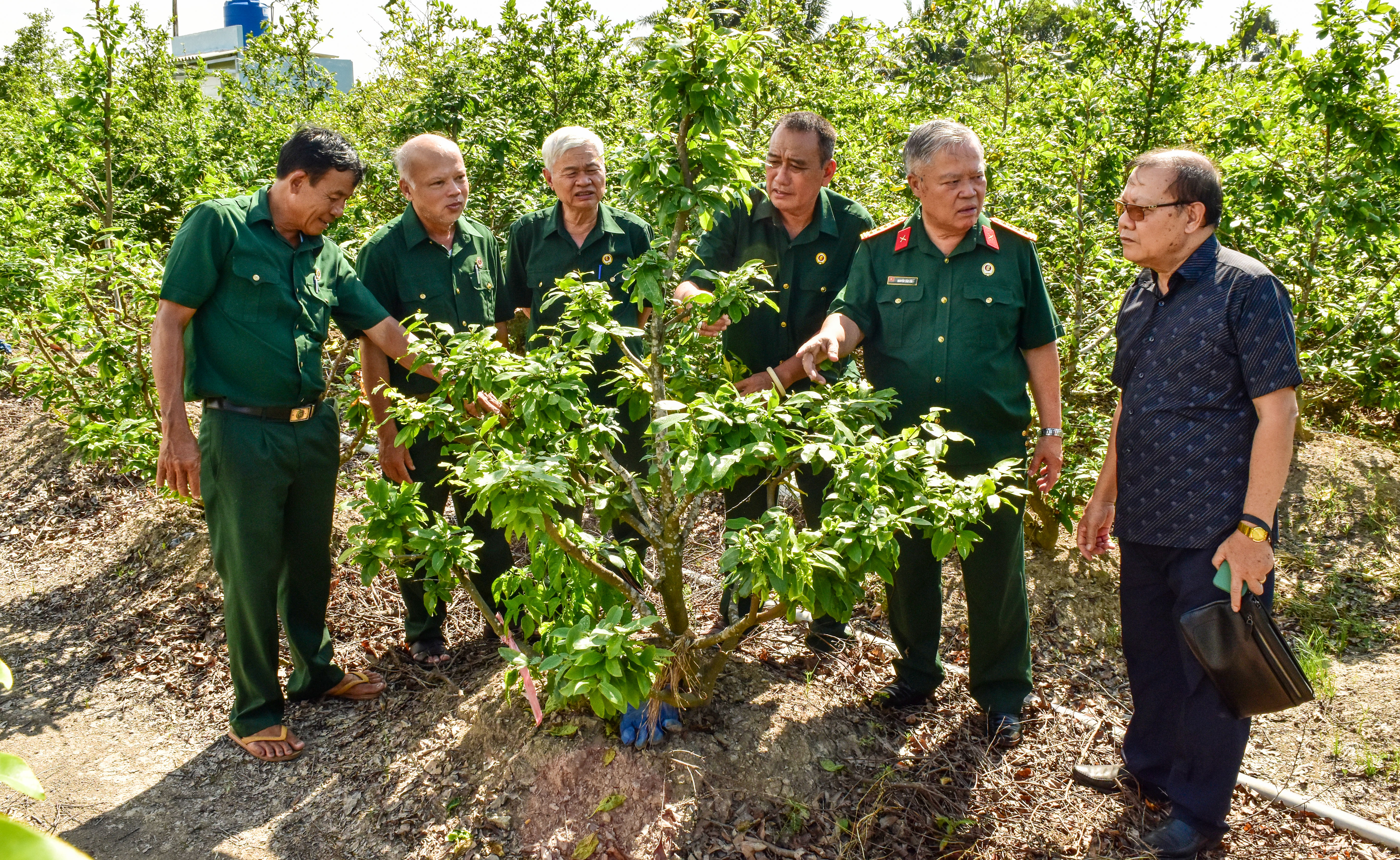 Câu lạc bộ doanh nhân CCB tỉnh Long An tham quan làng nghề trồng mai của Hội CCB xã Tân Tây, huyện Thạnh Hóa.