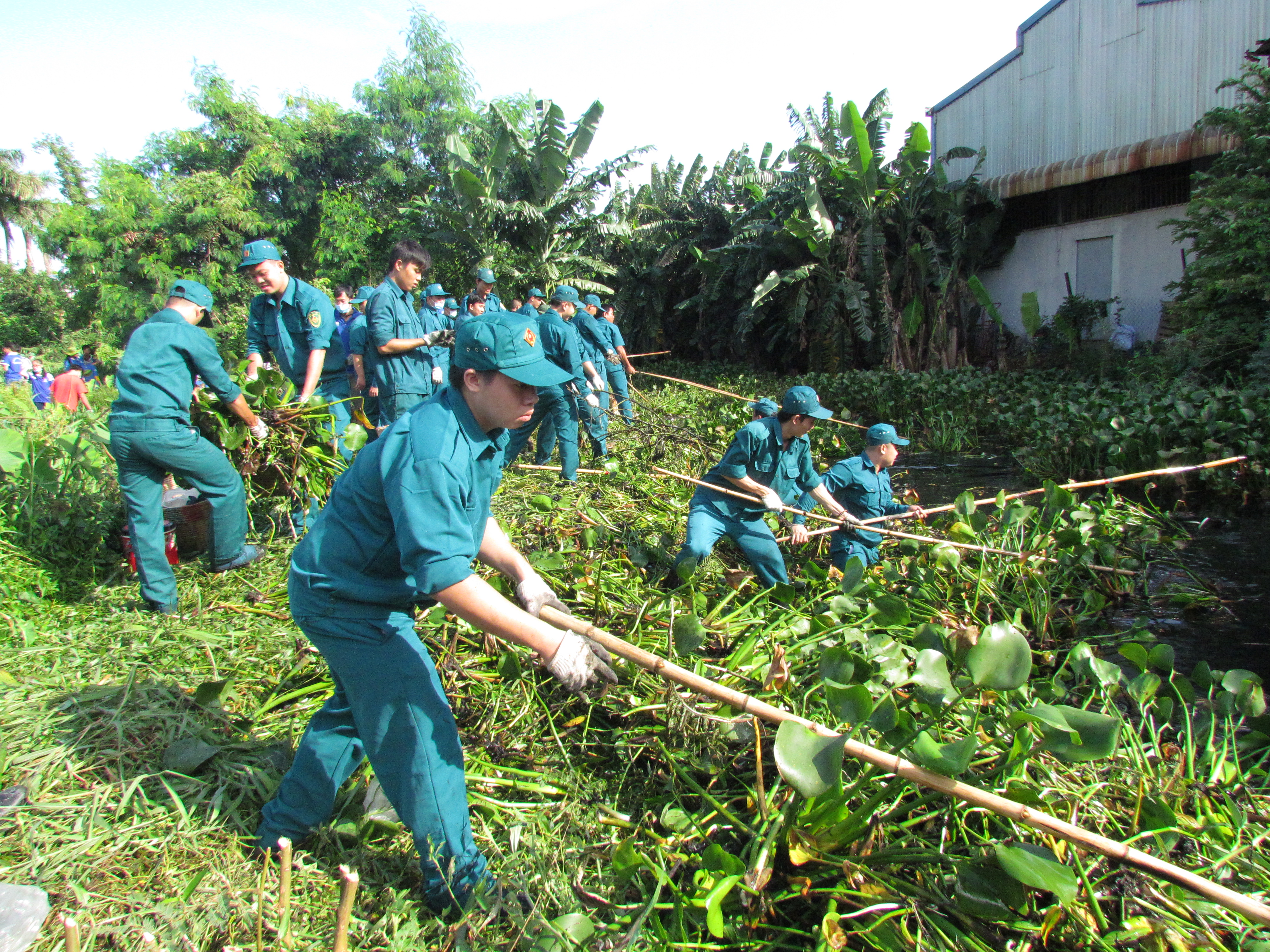 Đoàn viên dân quân quận Gò Vấp, TPHCM giúp dân nạo vét kênh mương