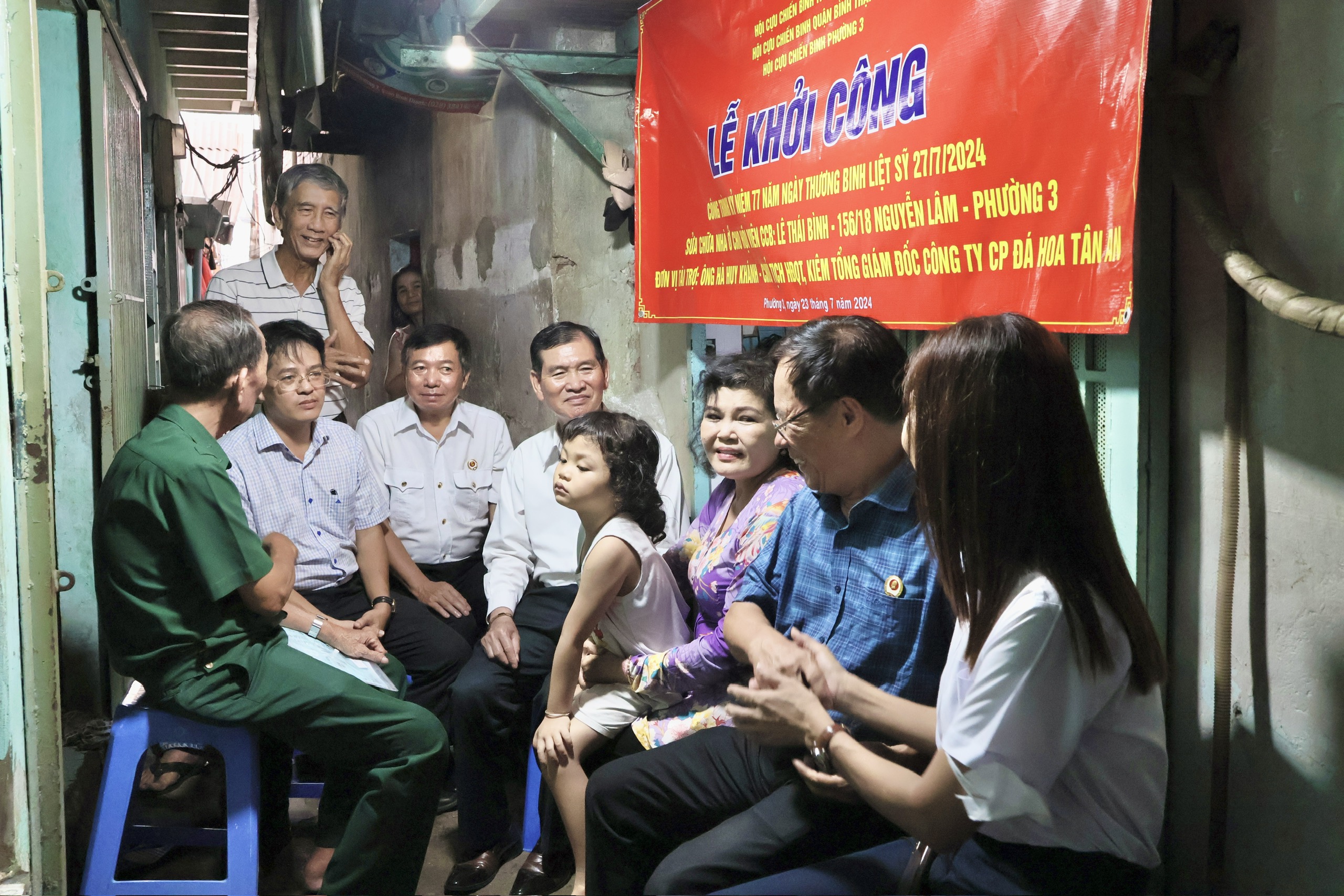 Nhà tài trợ Doanh nhân CCB Hà Huy Khánh cùng đại diện CCB quận Bình Thạnh, CCB phường 3 và đại diện cấp ủy, chính quyền địa phương trao tặng kinh phí sửa chữa nhà.