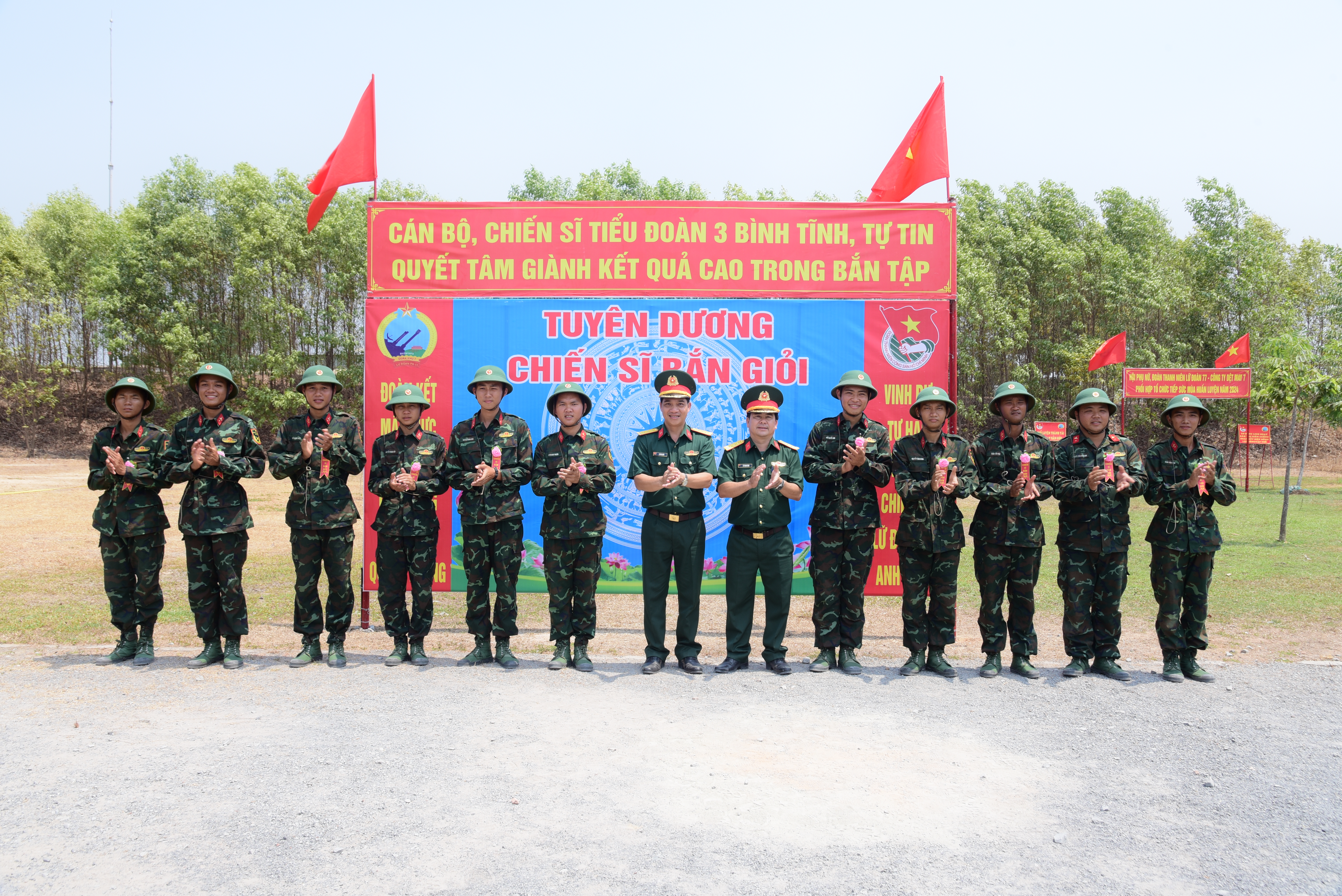 Dưới cái nắng gay gắt những ngày tháng 4 của miền Đông Nam Bộ, các chiến sĩ mới vẫn luôn tự tin bước vào tuyến bắn thể hiện khả năng của mình qua từng lượt bắn. Bài kiểm tra ngày càng khó hơn, nhưng không làm chùn bước chiến sĩ trẻ. Nhìn những gương mặt rám nắng, rắn rỏi cùng tác phong chững chạc bước vào vị trí kiểm tra, chúng tôi thấy rõ bước trưởng thành của từng chiến sĩ mới. “Hoa bắn giỏi” tiếp tục được cài lên ngực áo của chiến sĩ.