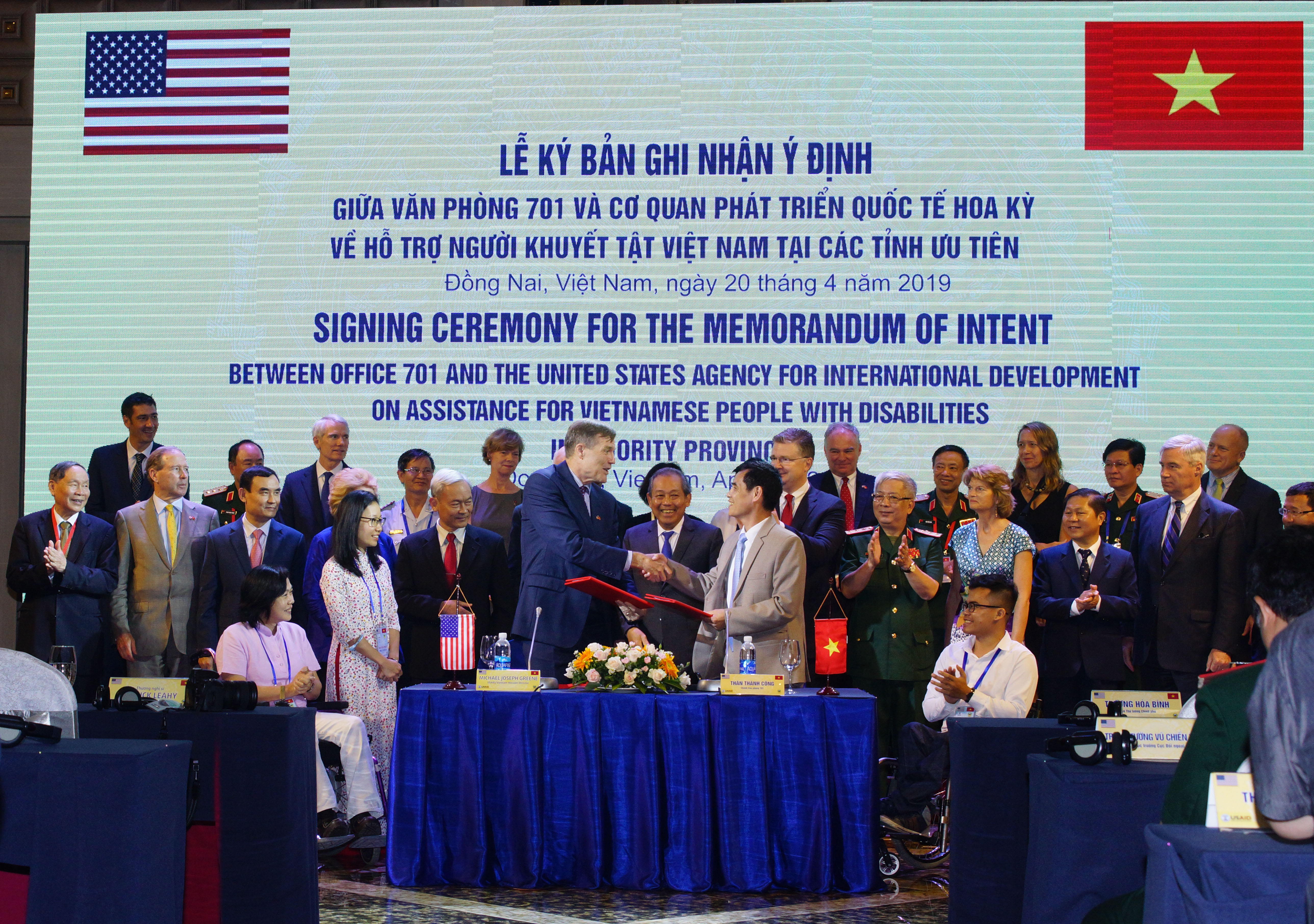 Tại lễ ký, Giám đốc USAID Việt Nam Michael Greene cho biết: “Thông qua mối quan hệ đối tác mới này với Văn phòng 701, chúng tôi tin rằng USAID và Văn phòng 701 sẽ hợp tác để tiếp cận nhiều hơn nữa người dân cần được hỗ trợ, thành công trong việc tạo ra một mô hình chăm sóc toàn diện và thực sự đạt được mục tiêu nâng cao chất lượng cuộc sống cho người khuyết tật tại Việt Nam.”
