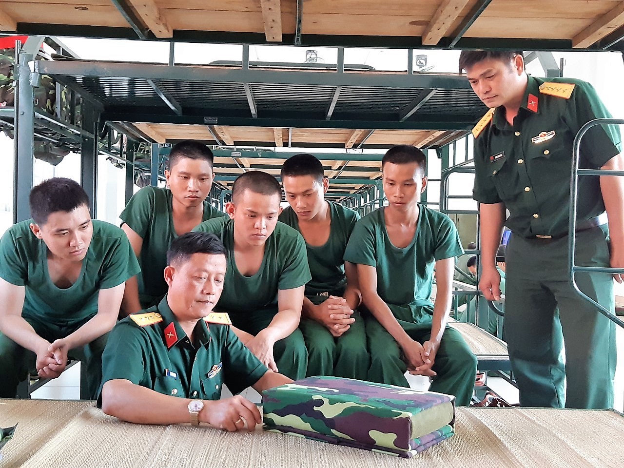 Hướng dẫn chiến sĩ mới gấp nội vụ.