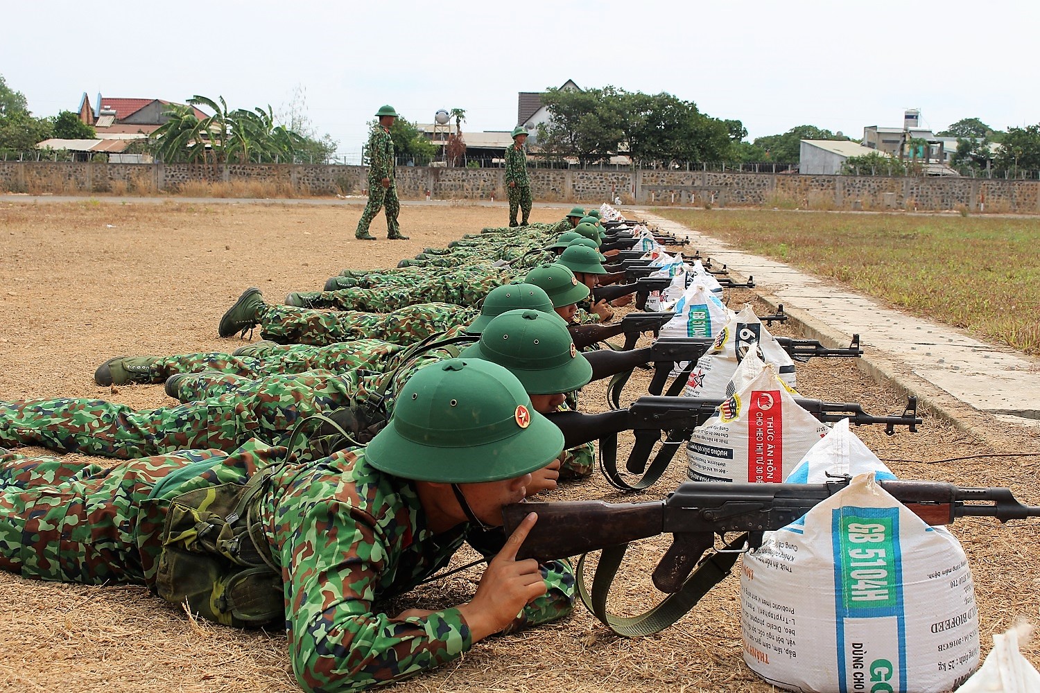 Chiến sĩ mới huấn luyện bắn súng tiểu liên AK.