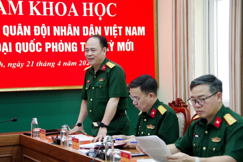 Đại tá, TS Bùi Thanh Cao, Phó Viện trưởng Viện Khoa học xã hội và Nhân văn quân sự, Học viện Chính trị phát biểu tại tọa đàm.