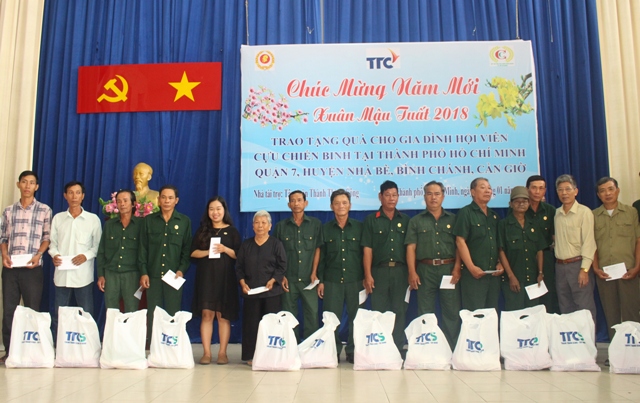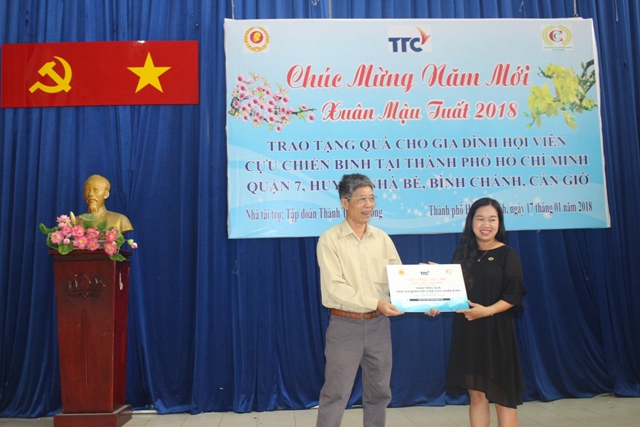Nhà tài trợ trao quà tượng trưng cho đại diện Hội CCB thành phố