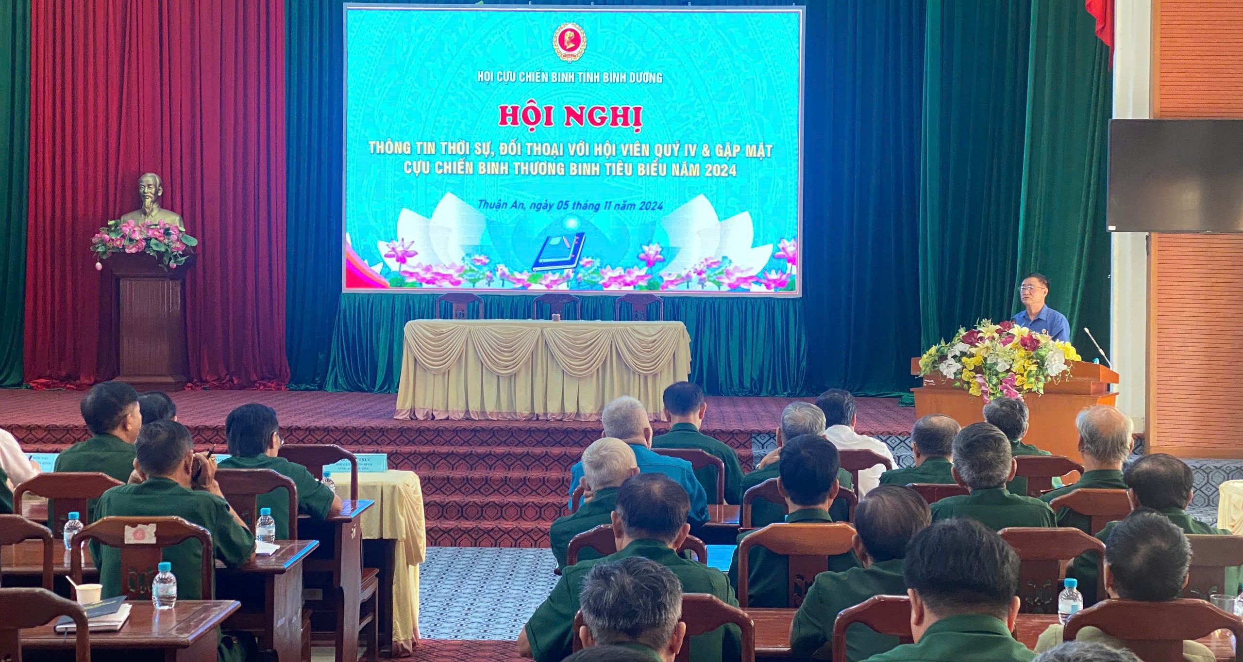 (QK7 Online) - Sáng 5/11, tại Ban CHQS thành phố Thuận An, Hội Cựu chiến binh tỉnh Bình Dương tổ chức Hội nghị thông tin thời sự, đối thoại với hội viên cựu chiến binh quý IV và gặp mặt cựu chiến binh thương binh tiêu biểu năm 2024.