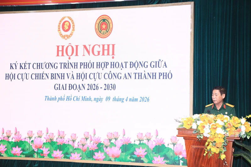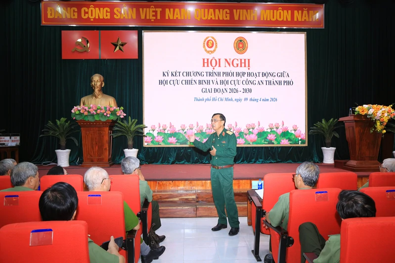 (QK7 Online) – Sáng 9/4, Hội Cựu chiến binh (CCB) Thành phố Hồ Chí Minh và Hội Cựu Công an nhân dân (CAND) Thành phố tổ chức hội nghị ký kết chương trình phối hợp hoạt động giai đoạn 2026 - 2030. Thiếu tướng Nguyễn Minh Hoàng, Phó Chủ tịch Hội CCB Việt Nam, Phó Chủ tịch Ủy ban MTTQ Việt Nam Thành phố, Chủ tịch Hội CCB Thành phố và Thiếu tướng Đào Công Danh, Chủ tịch Hội Cựu CAND Thành phố đồng chủ trì hội nghị.