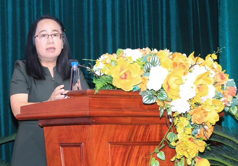 Đồng chí Đinh Thị Thanh Thủy, Phó Trưởng Ban Tuyên giáo và Dân Thành ủy Thành phố phát biểu.