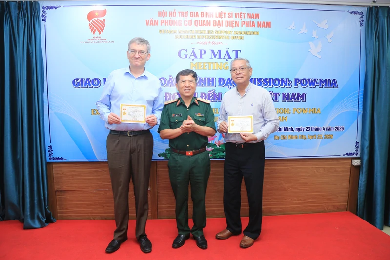 (QK7 online) - Ngày 23/4, tại Thành phố Hồ Chí Minh, Hội Hỗ trợ gia đình liệt sĩ (HTGĐLS) Việt Nam, Văn phòng Cơ quan đại diện phía Nam phối hợp với Tổ chức Mission POW/MIA, Hoa Kỳ gặp mặt, giao lưu, trao đổi thông tin về công tác tìm kiếm, quy tập hài cốt liệt sĩ (HCLS).