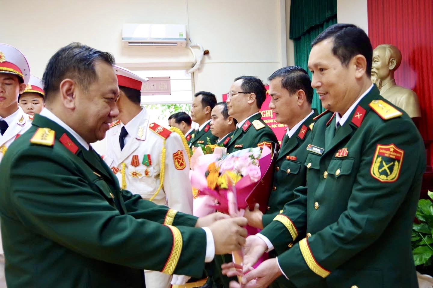 Đại tá Nguyễn Thành Trung, Thành ủy viên, Phó Bí thư Thường trực Đảng ủy Quân sự, Chính ủy Bộ Tư lệnh TPHCM trao quyết định cho các đồng chí trong Ban Chấp hành Đảng bộ Ban Chỉ huy Phòng thủ khu vực 6 - Đặc khu Côn Đảo.