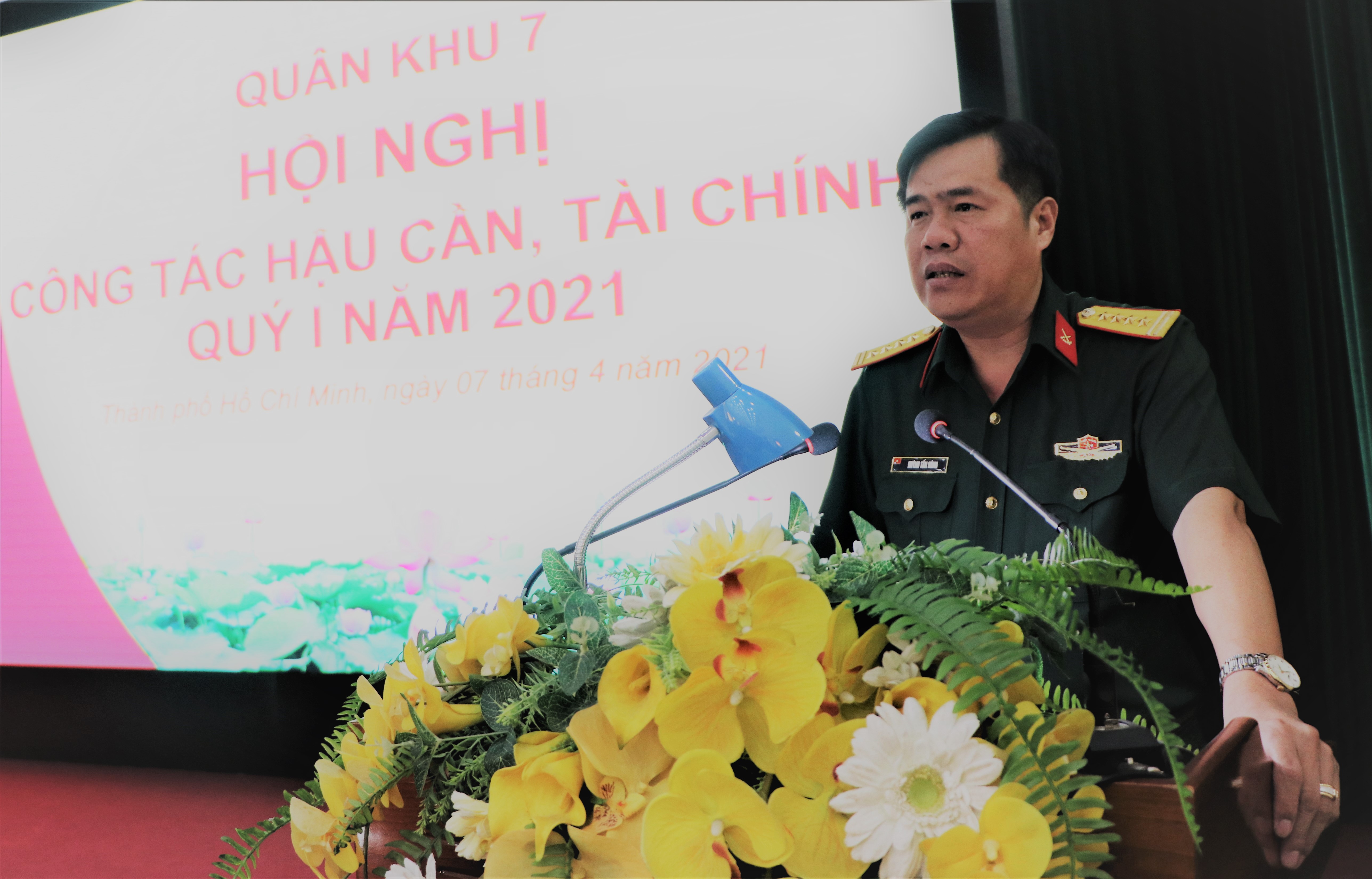 (QK7 Online) - Ngày 7/4, Quân khu 7 tổ chức hội nghị công tác Hậu cần, Tài chính quý I năm 2021. Đại tá Huỳnh Tấn Hùng, Chủ nhiệm Hậu cần Quân khu chủ trì hội nghị.