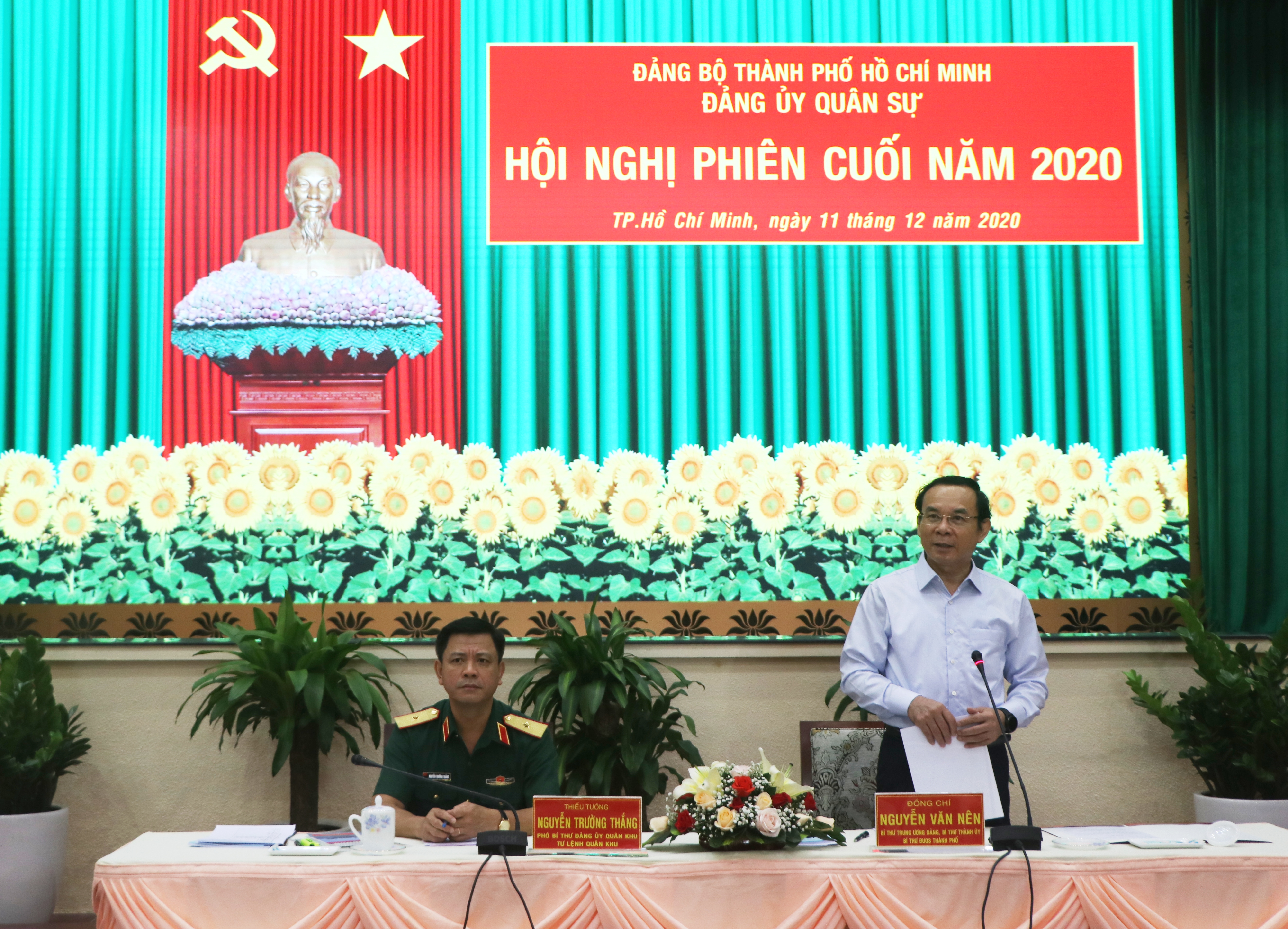 (QK7 Online) - Ngày 11/12, Ban Thường vụ Đảng ủy Quân sự Thành phố Hồ Chí Minh tổ chức Hội nghị Đảng ủy Quân sự thành phố phiên cuối năm 2020. Thiếu tướng Nguyễn Trường Thắng, Phó Bí thư Đảng ủy Quân khu, Tư lệnh Quân khu 7 tới dự và chỉ đạo hội nghị. Đồng chí Nguyễn Văn Nên, Bí thư Trung ương Đảng, Bí thư Thành ủy, Bí thư Đảng ủy Quân sự Thành phố Hồ Chí Minh chủ trì hội nghị.
