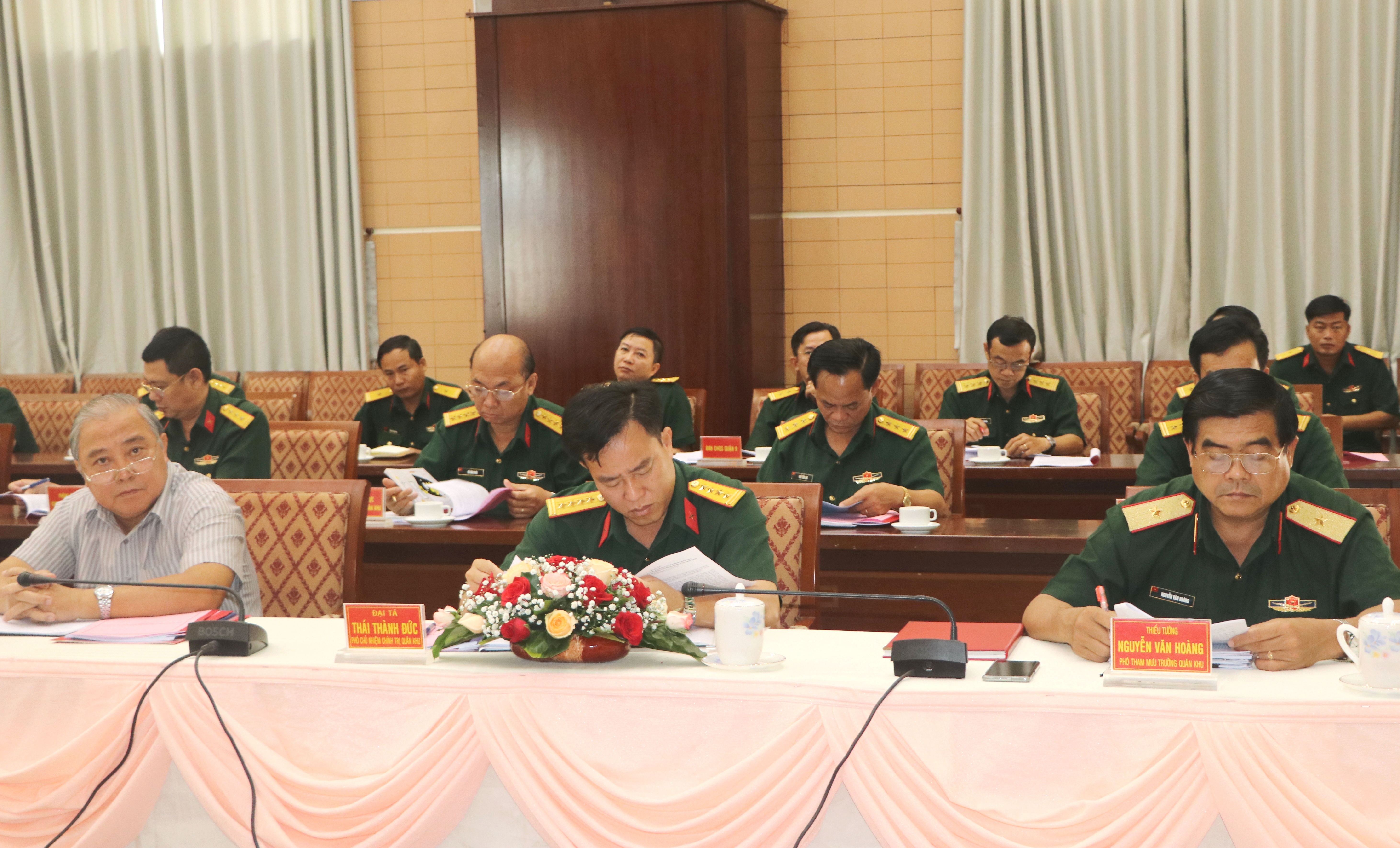 Phát biểu chỉ đạo hội nghị, Thiếu tướng Nguyễn Trường Thắng, Phó Bí thư Đảng ủy Quân khu, Tư lệnh Quân khu 7 đánh giá cao những kết quả đạt được trên các mặt công tác của Đảng ủy Quân sự Thành phố Hồ Chí Minh trong thời gian qua, điểm sáng nổi bật là công tác phối hợp phòng, chống dịch Covid-19. Đồng chí Tư lệnh Quân khu đề nghị, thời gian tới, đơn vị tiếp tục phối hợp tốt việc thực hiện phòng, chống dịch Covid-19, đặc biệt hiện nay trước tình hình dịch Covid-19 vẫn đang diễn biến phức tạp, công tác đảm bảo phòng, chống dịch cần được coi trọng. Đồng chí Tư lệnh Quân khu đề nghị đơn vị tăng cường lực lượng nắm vững tình hình chính trị nội bộ. Quan tâm phát huy tốt các phong trào văn hóa, văn nghệ, thể dục, thể thao. Thiếu tướng Nguyễn Trường Thắng đề nghị các cơ quan Quân khu quan tâm, hỗ trợ trong công tác cán bộ, trong việc xây dựng nhà ở xã hội đối với Bộ Tư lệnh Thành phố Hồ Chí Minh.