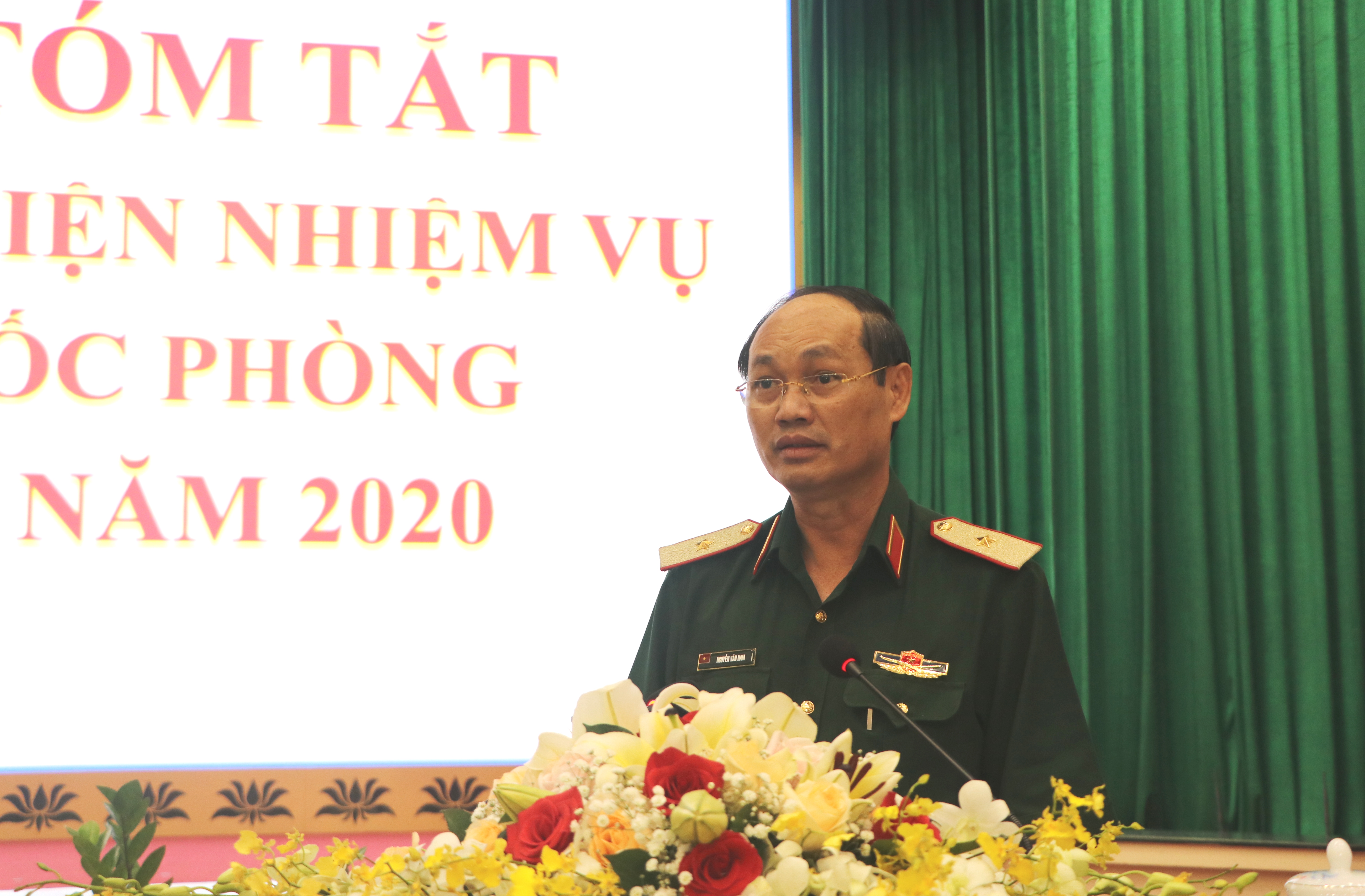 Thiếu tướng Nguyễn Văn Nam, Phó Bí thư Đảng ủy Quân sự thành phố, Tư lệnh Bộ Tư lệnh Thành phố Hồ Chí Minh báo cáo tóm tắt kết quả nổi bật công tác quân sự, quốc phòng địa phương năm 2020.