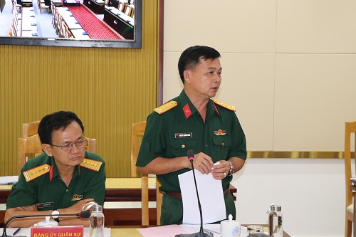 Thủ trưởng Cục Chính trị Quân khu phát biểu đóng góp ý kiến tại hội nghị.