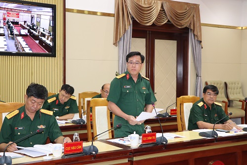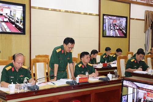 Thủ trưởng Bộ Tham mưu Quân khu phát biểu ý kiến tại hội nghị.
