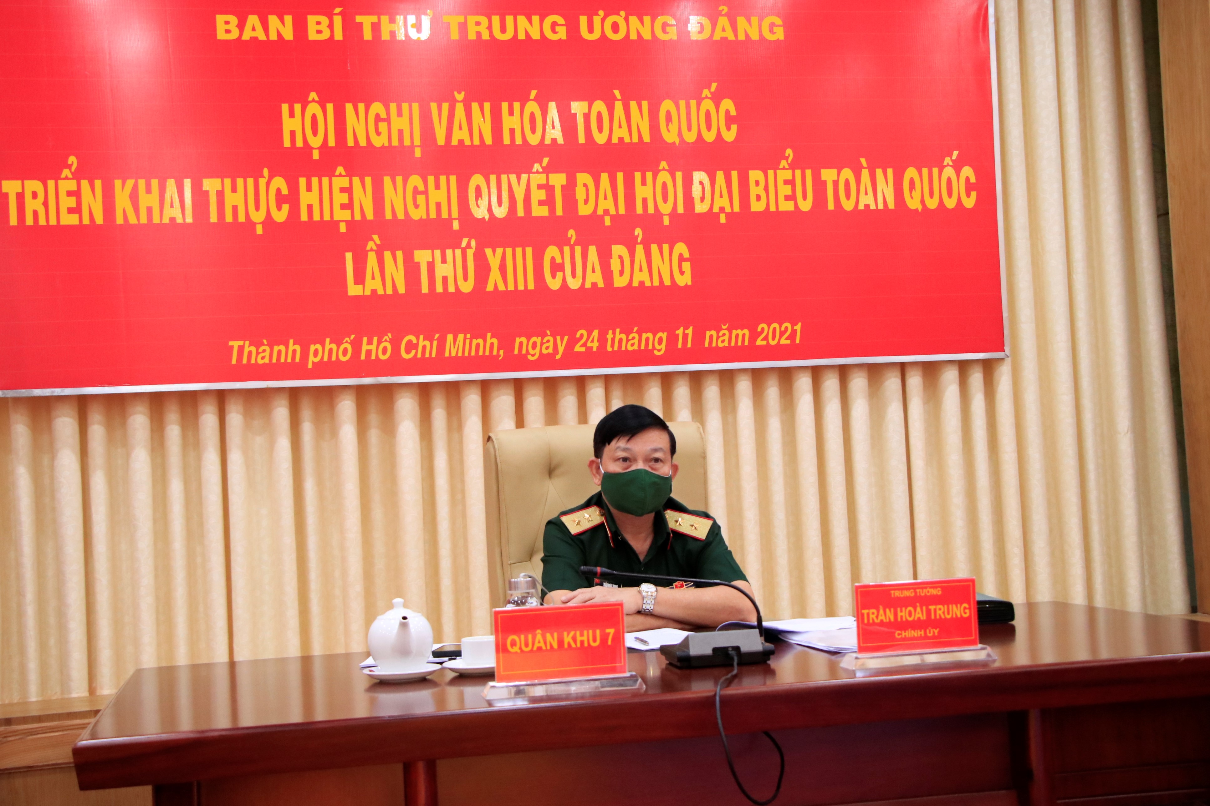 Trung tướng Trần Hoài Trung, Bí thư Đảng ủy, Chính ủy Quân khu chủ trì hội nghị tại điểm cầu Quân khu 7.