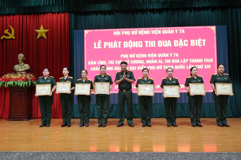 Dịp này, Bệnh viện Quân y 7A công bố và trao quyết định khen thưởng cho 7 tập thể hoàn thành xuất sắc nhiệm vụ trong thực hiện công tác Phụ nữ và phong trào Phụ nữ Bệnh viện năm 2025; 16 cá nhân “Cán bộ hội xuất sắc” trong thực hiện công tác Phụ nữ và phong trào Phụ nữ Bệnh viện năm 2025 và 135 cá nhân “Hội viên xuất sắc” trong thực hiện công tác Phụ nữ và phong trào Phụ nữ Bệnh viện năm 2025.