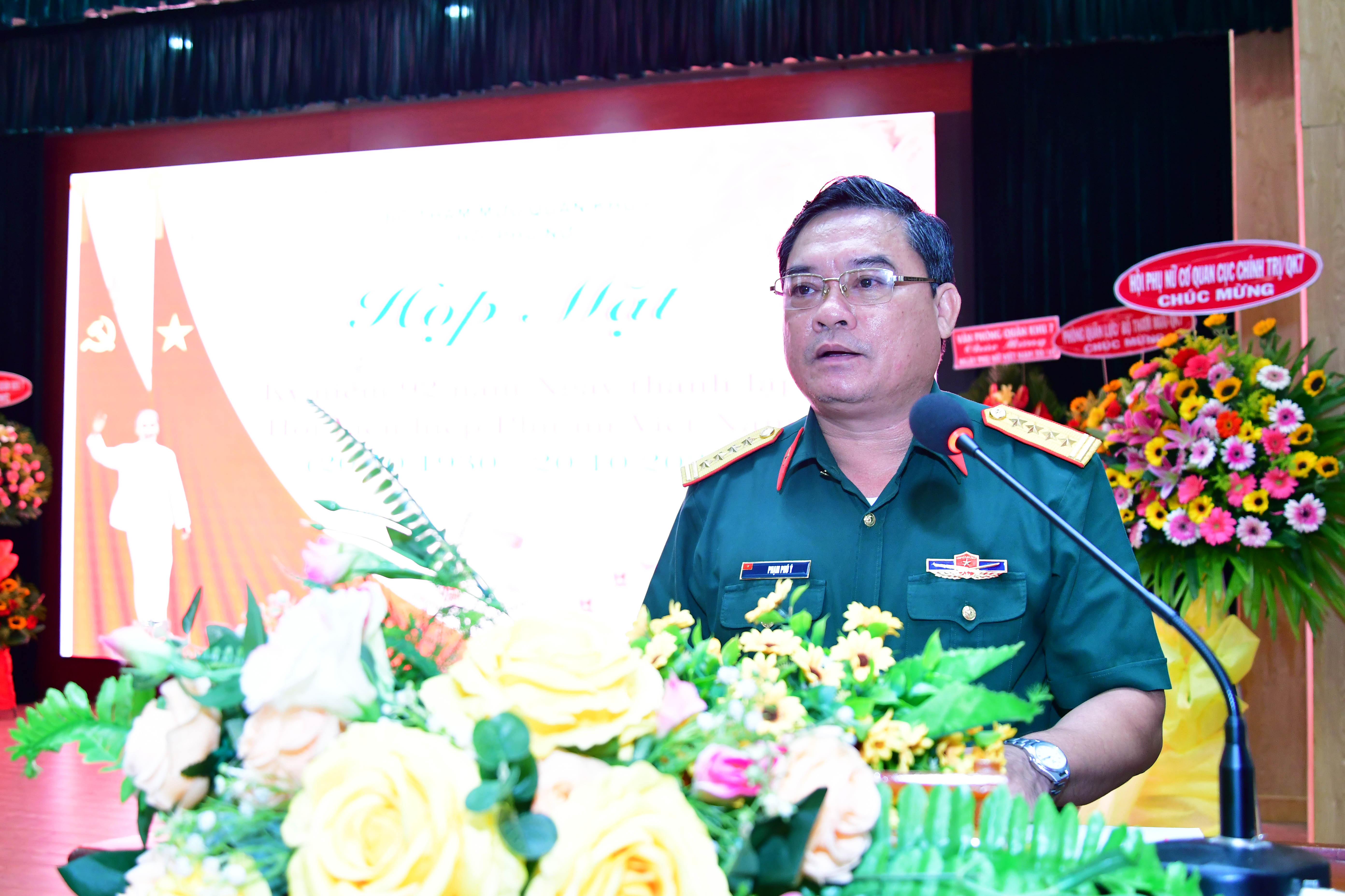 Đại tá Phạm Phú Ý, Phó Tham mưu trưởng Quân khu phát biểu tại buổi họp mặt.