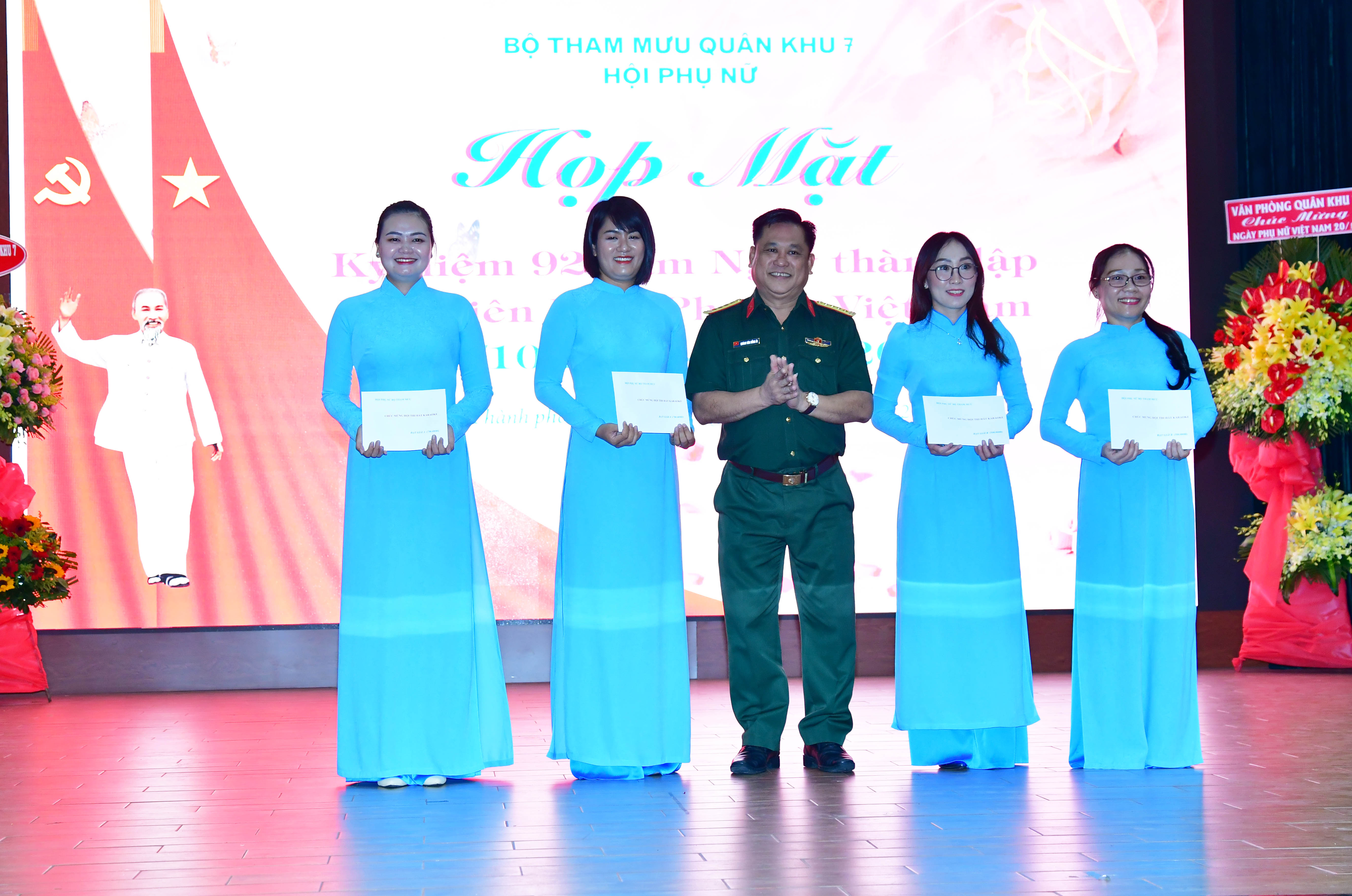 Phát biểu tại buổi họp mặt, Đại tá Phạm Phú Ý, Phó Tham mưu trưởng Quân khu 7 chúc mừng những kết quả đạt được của 98 hội viên phụ nữ đang công tác trong các cơ quan của Bộ Tham mưu Quân khu. Đặc biệt là nhiều hội viên đạt thành tích cao từ hội thi, hội thao trong lĩnh vực thể thao đã mang về những huy chương mang tầm vóc quốc tế, khu vực; góp phần quan trọng khẳng định vị thế của Phụ nữ Việt Nam nói chung và Phụ nữ Bộ Tham mưu Quân khu 7 nói riêng.