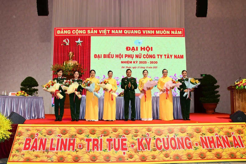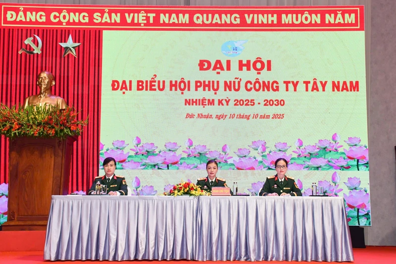 (QK7 Online) - Ngày 10/10, Hội phụ nữ Công ty Tây Nam tổ chức Đại hội đại biểu nhiệm kỳ 2025-2030. Đại tá Trương Kim Hoàng, Bí thư Đảng ủy, Chủ tịch Công ty Tây Nam dự, chỉ đạo đại hội.