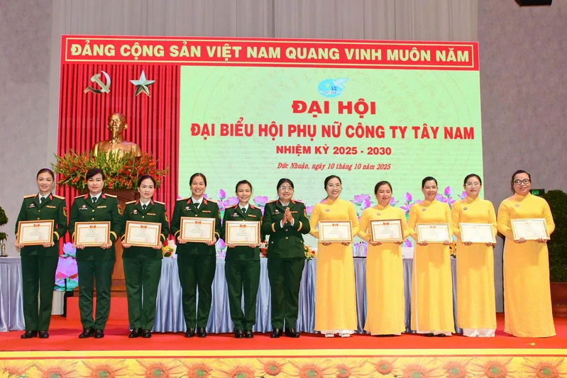 Nhân dịp này, Đảng ủy, Ban Tổng Giám đốc Công ty Tây Nam khen thưởng 2 tập thể, 11 cá nhân có thành tích xuất sắc trong tổng kết công tác phụ nữ và phong trào phụ nữ giai đoạn 2021-2025.