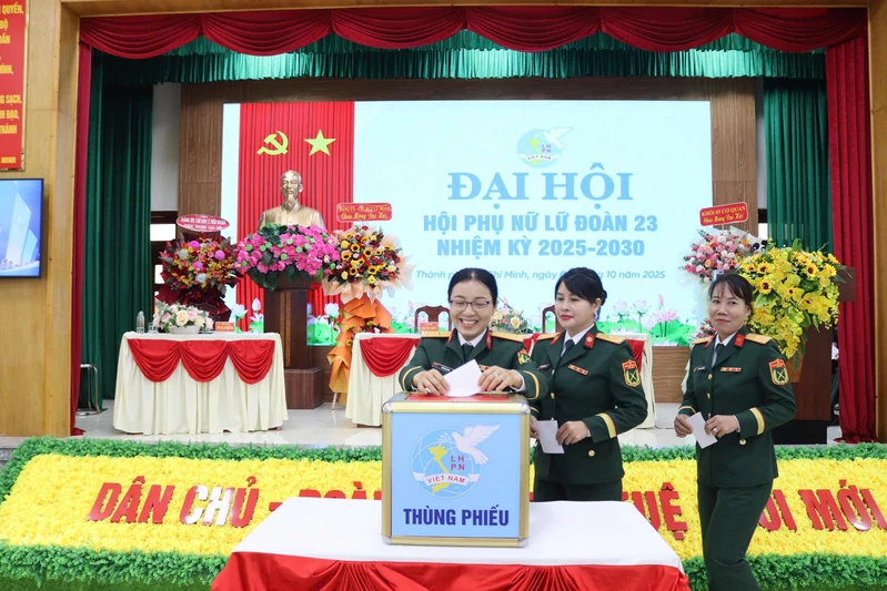 Với tinh thần đoàn kết, trí tuệ, dân chủ, đại hội bầu Ban Chấp hành Hội Phụ nữ Lữ đoàn 23 nhiệm kỳ 2025 - 2030 gồm 5 đồng chí với số phiếu tín nhiệm cao.