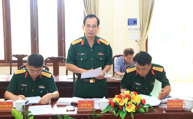 Đại tá Trần Huy Định, Trưởng phòng Khoa học Quân sự Quân khu phát biểu tiếp thu các ý kiến đóng góp, bổ sung hoàn thành bản thảo cuốn sách “Lịch sử Lữ đoàn Công binh 25” (2016 - 2026).