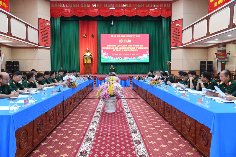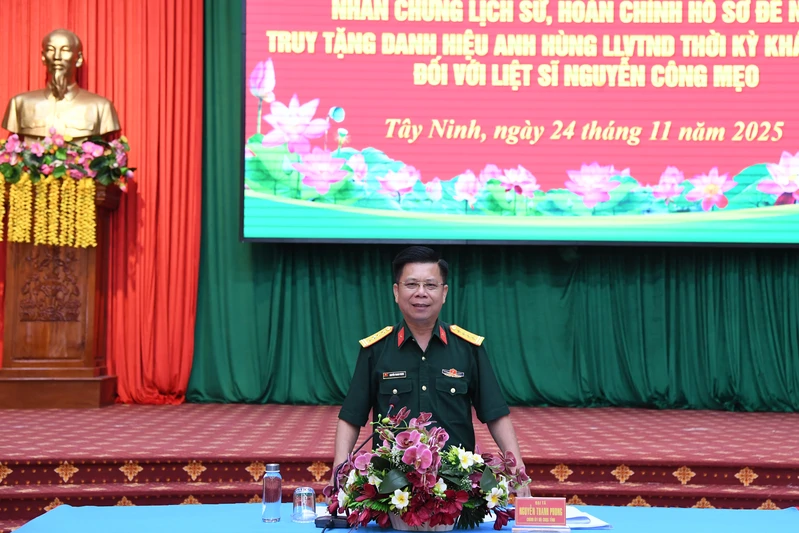 (QK7 Online) - Ngày 24/11, Bộ CHQS tỉnh Tây Ninh tổ chức hội thảo nhân chứng lịch sử, hoàn chỉnh hồ sơ đề nghị truy tặng danh hiệu Anh hùng LLVT Nhân dân thời kỳ kháng chiến đối với Liệt sĩ Nguyễn Công Mẹo, nguyên Chính trị viên phó Đại đội 1, Tiểu đoàn 16 - Phân khu 2, tỉnh Long An (nay là tỉnh Tây Ninh). Đại tá Nguyễn Như Trúc, Phó Chủ nhiệm Chính trị Quân khu dự, chỉ đạo hội thảo. Đại tá Nguyễn Thanh Phong, Chính ủy Bộ CHQS tỉnh chủ trì hội thảo.